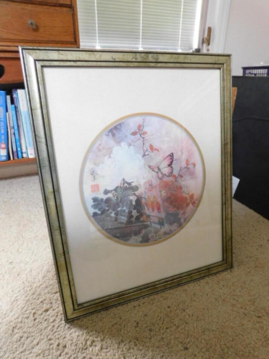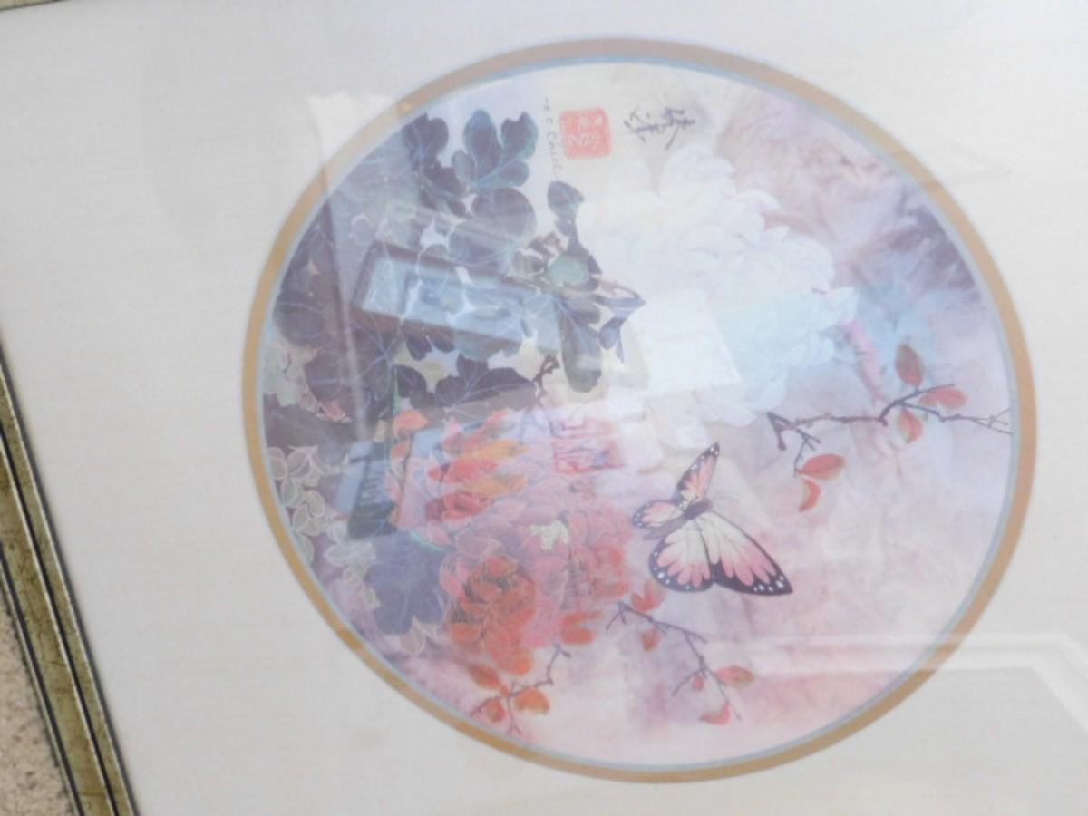 Framed Artwork Pink Butterfly and Branches by T. C. Chiu