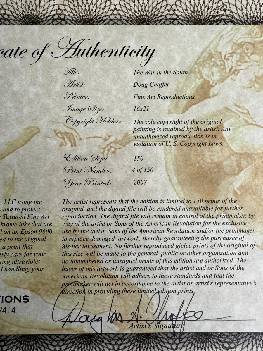 Framed Artwork, The War in the South by Doug Chaffee, Signed by Artist with Certificate of Authenticity