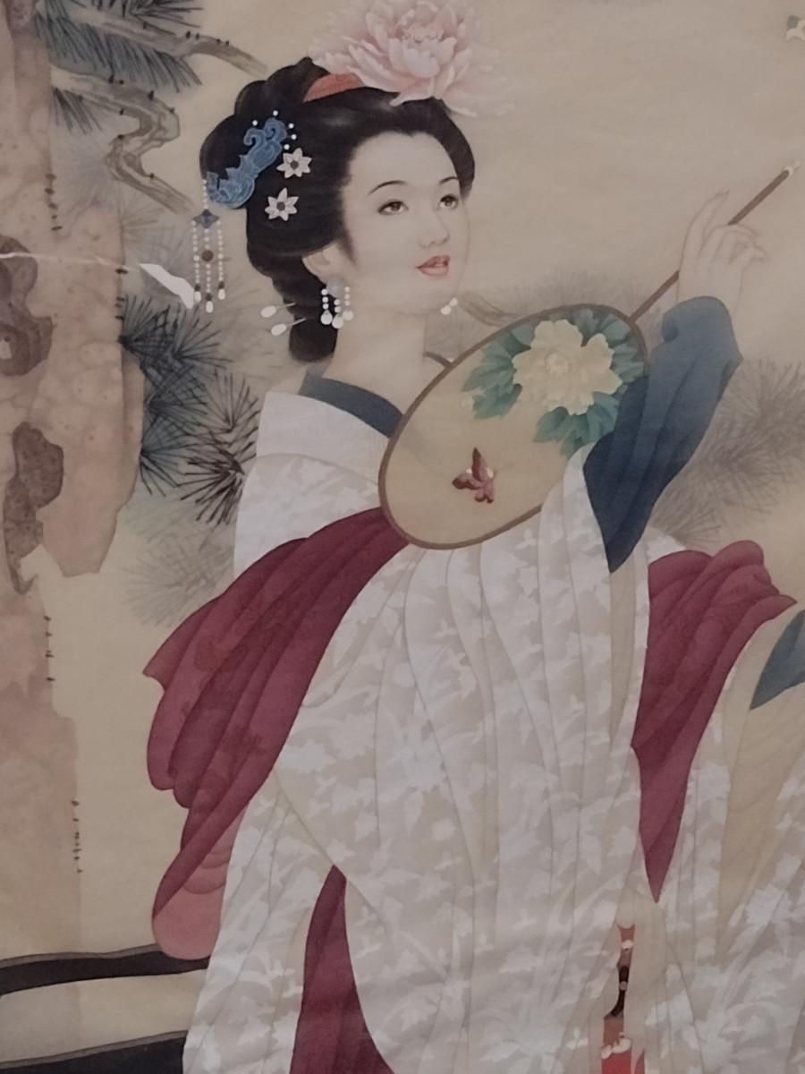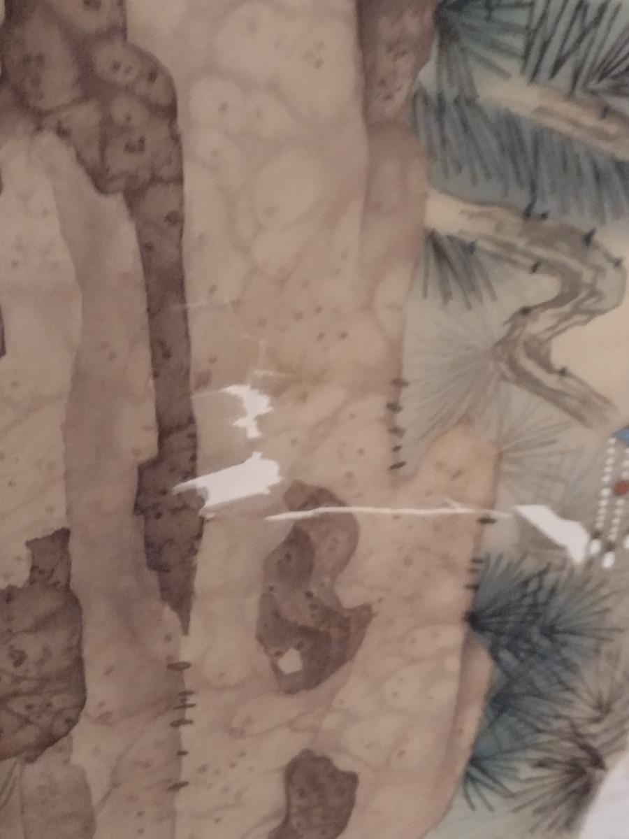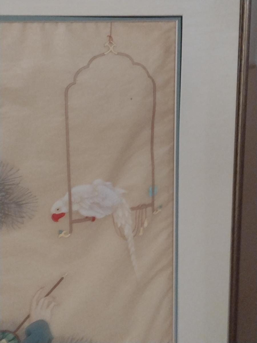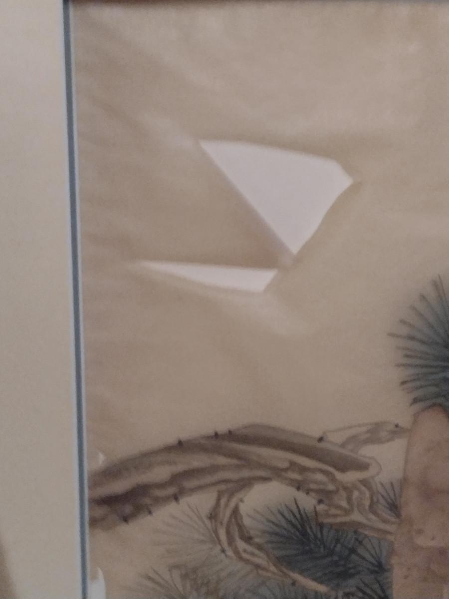 Framed Asian Design Art on Paper- Approx 39 3/4" x 53 1/2". Item has tears in paper- please see all pictures for condition.