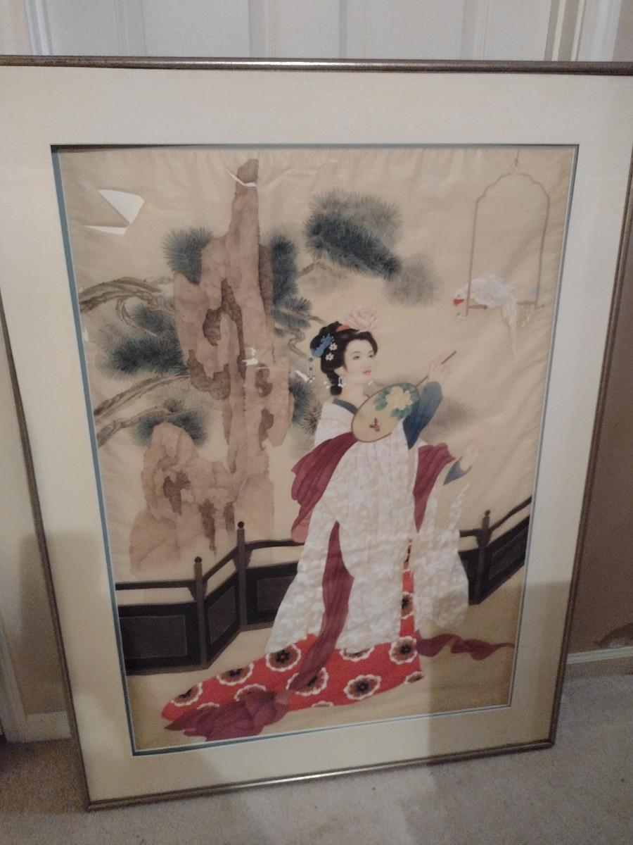 Framed Asian Design Art on Paper- Approx 39 3/4" x 53 1/2"