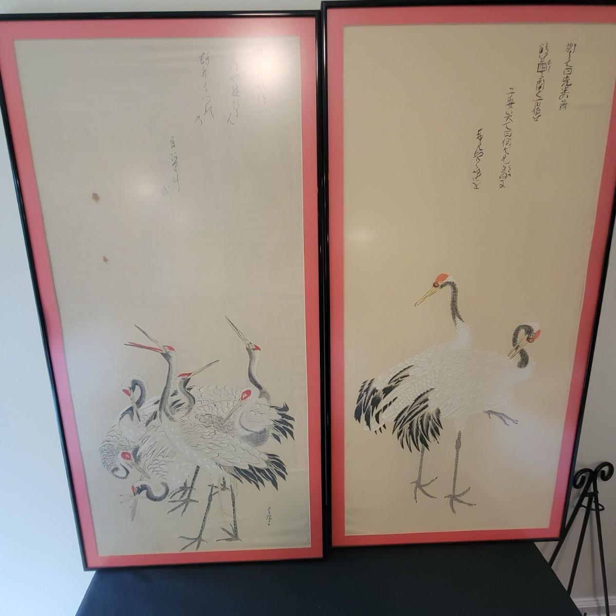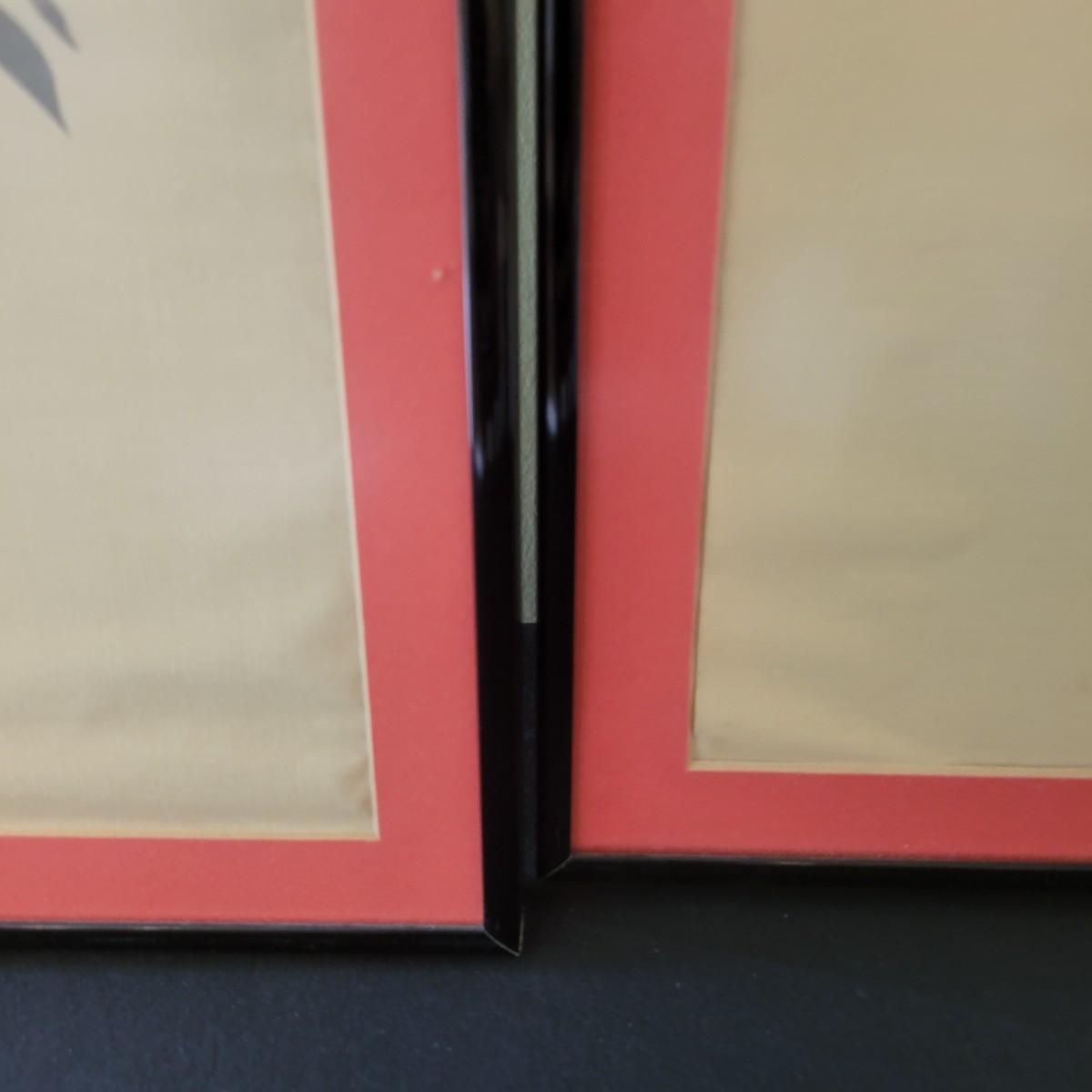 A matching pair of framed Asian paintings on rice paper. The paper on both pieces are yellowing a bit. Custom framed in black aluminum frames with 1" mats and non glare glass. Both pieces are in excellent condition. The frames each measure approximately 16.25 x 32.25" x 1". Shipping available. Shipping art may be costly, we suggest calling our local UPS Store with dimensions and getting an estimate prior to bidding. 828-252-6930.