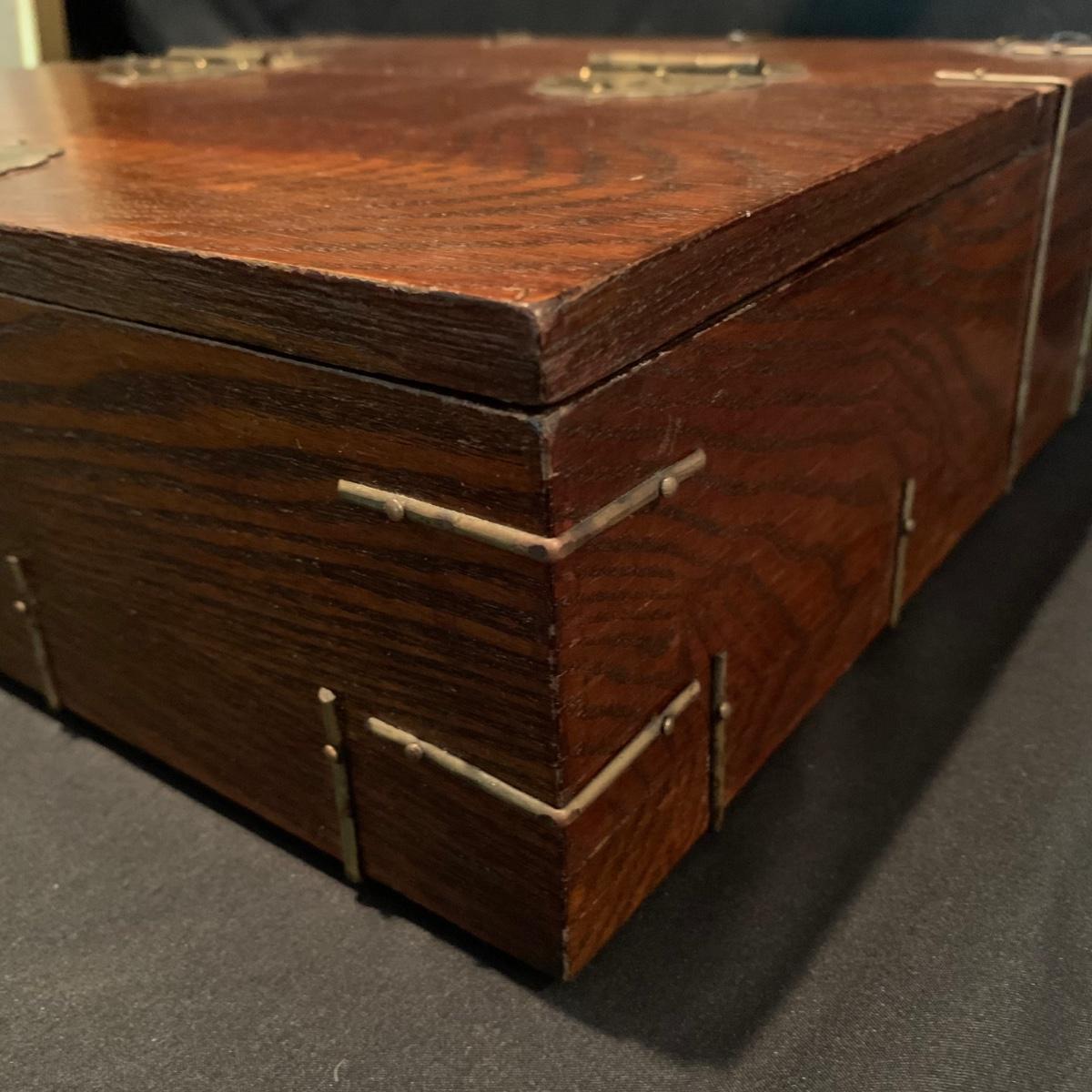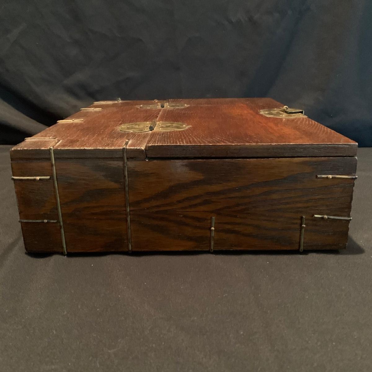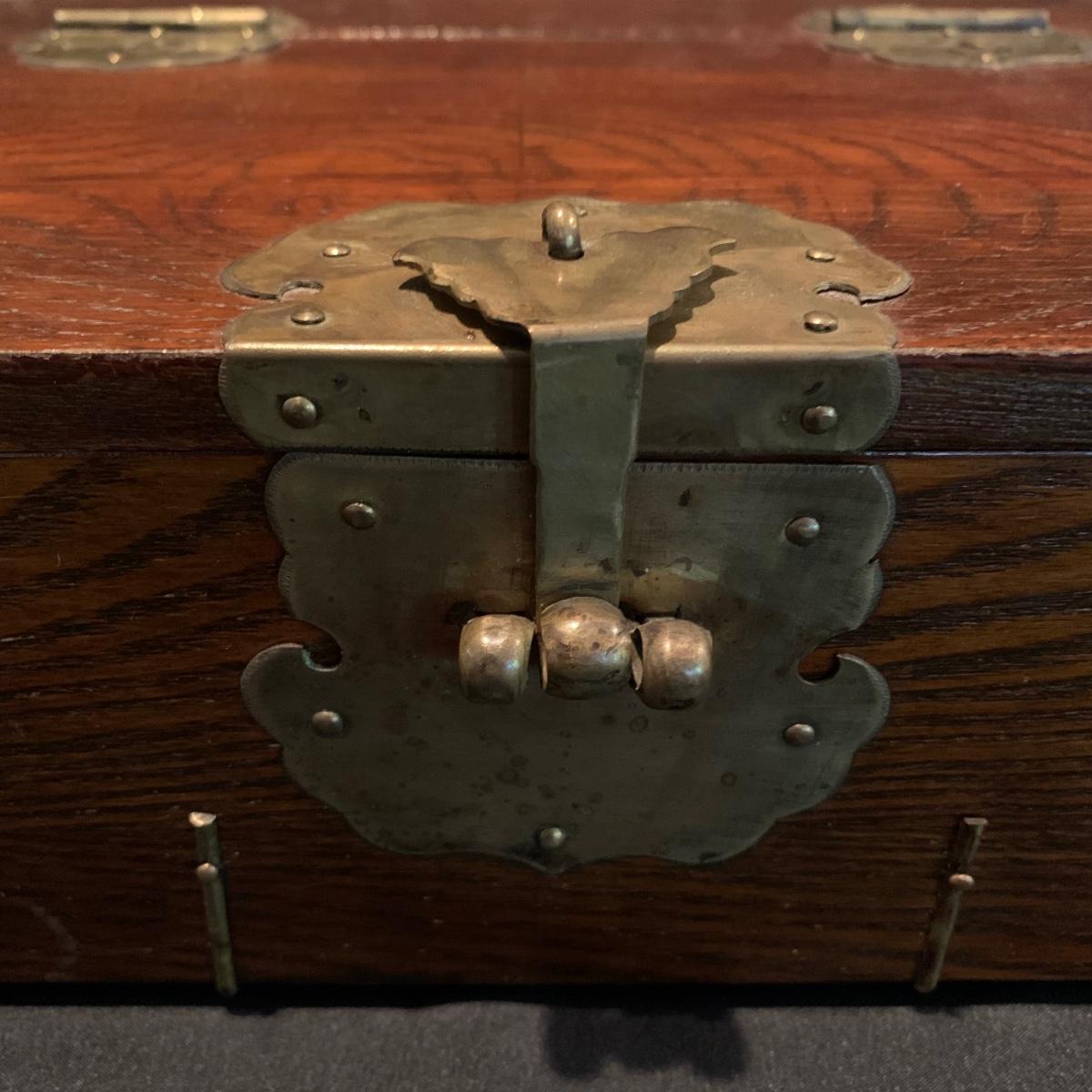 Lovely framed Asian silk and wooden box. Silk is framed in gold painted frame behind glass. Wooden box opens from the top and features printed Korean Hangukmal. Box has metal framing and small closure that could potentially lock. Framed silk measures, 14” x 27”. Shipping available. Shipping can be costly. We suggest contacting our preferred local shipping provider, Postage Express, with dimensions and getting an estimate before bidding: (828) 670-5501or postageexpress@yahoo.com.