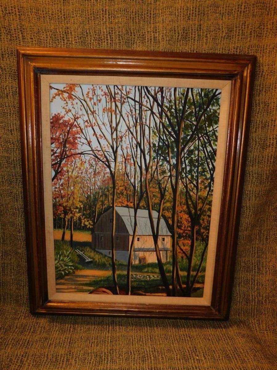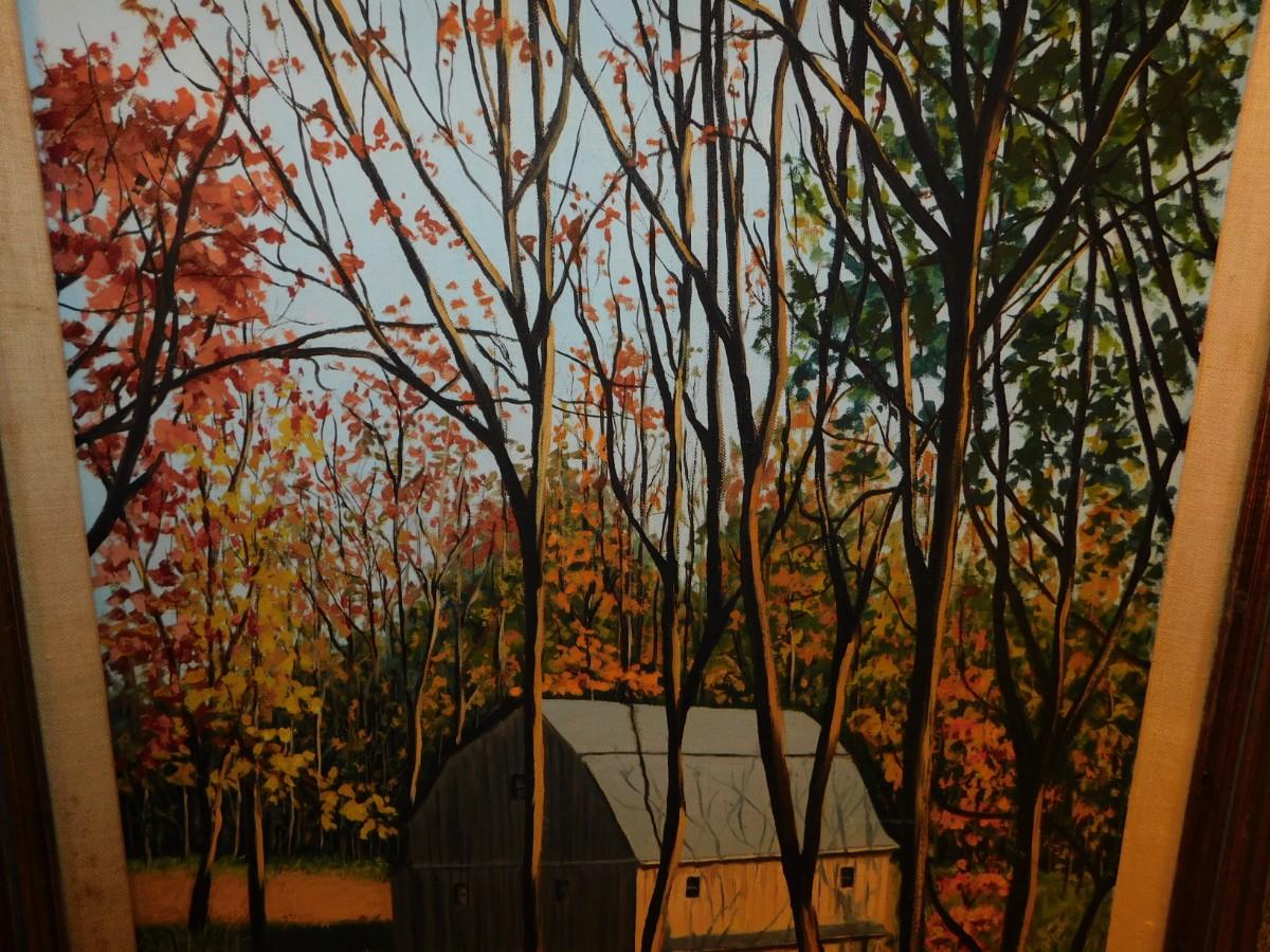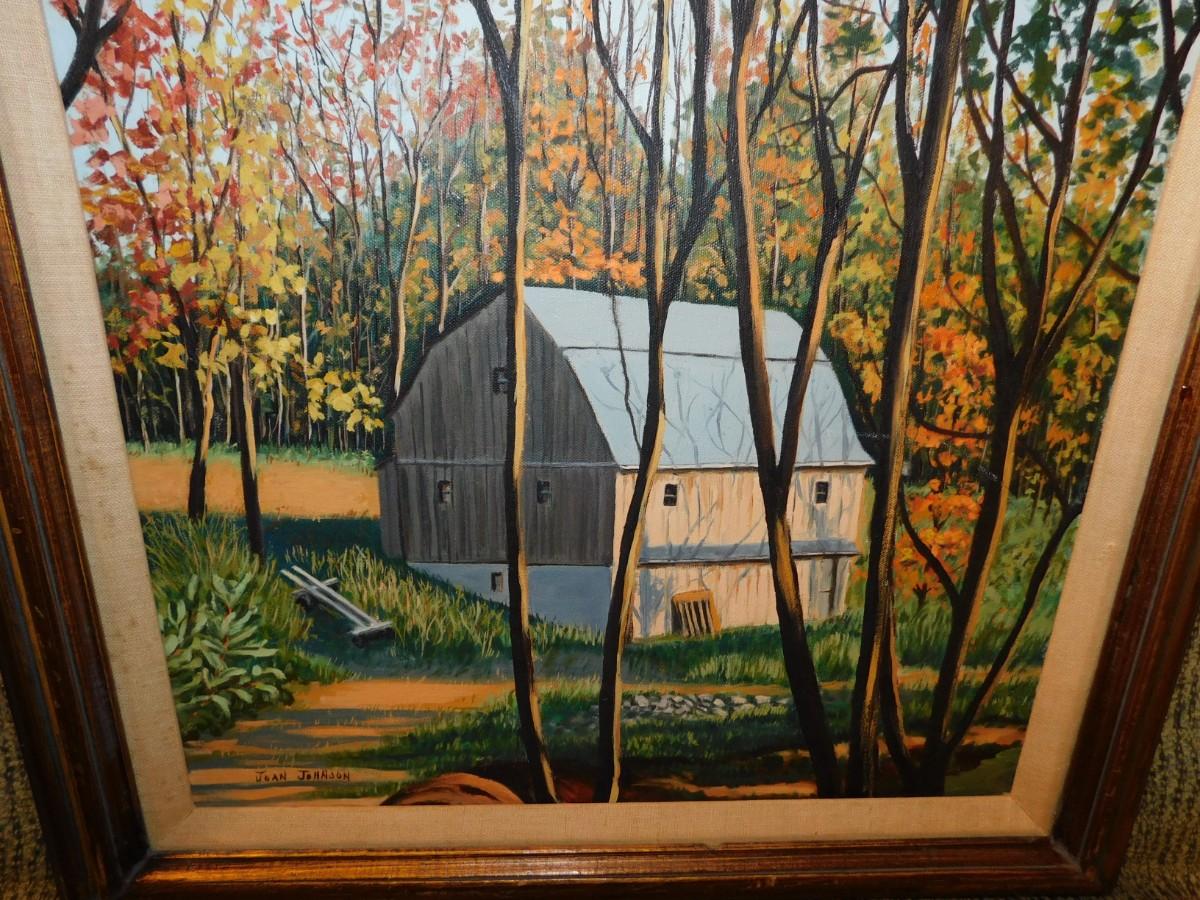 Framed Autumnal Barn Painting by Joan Johnson 30.75”x25”