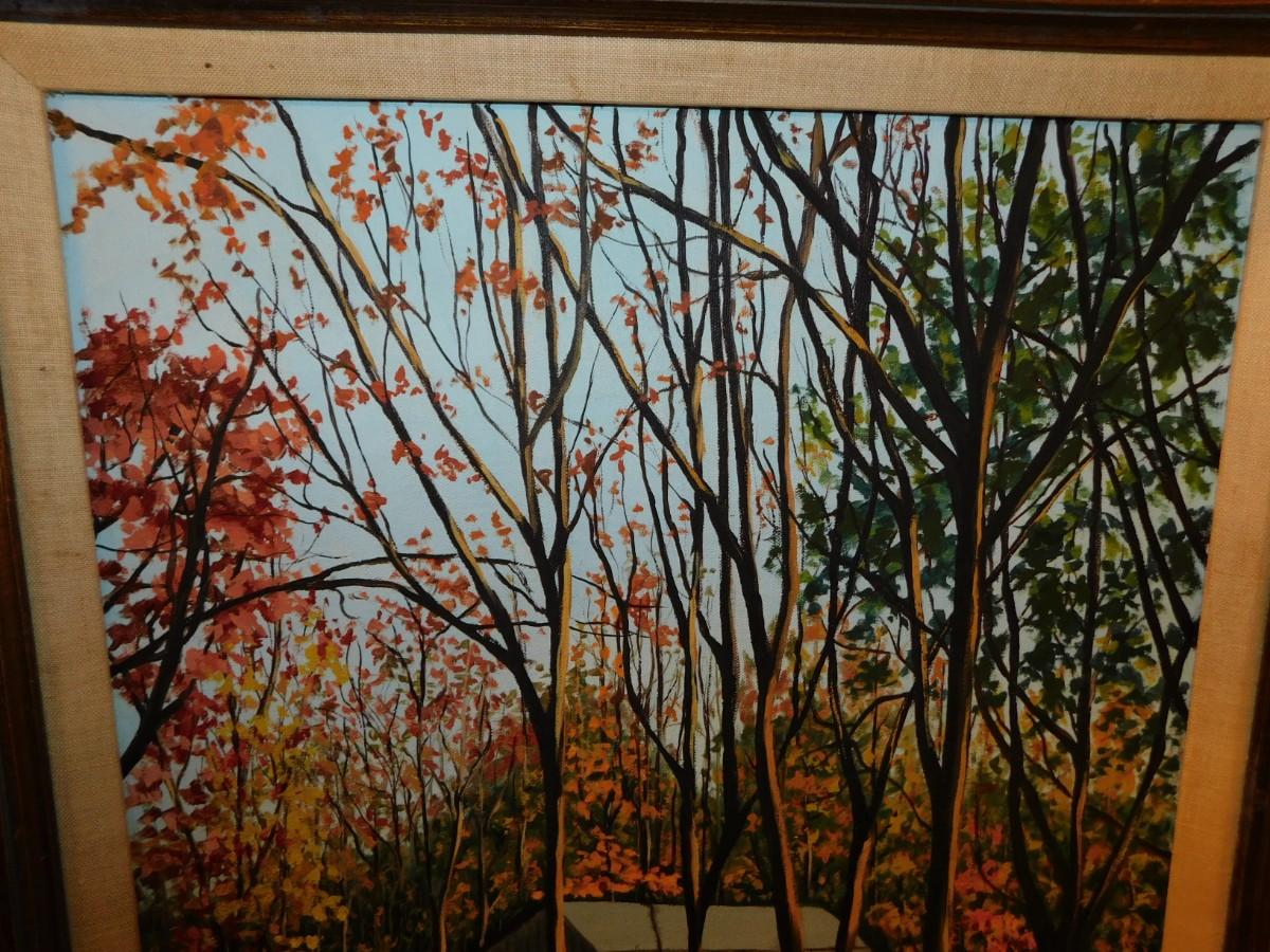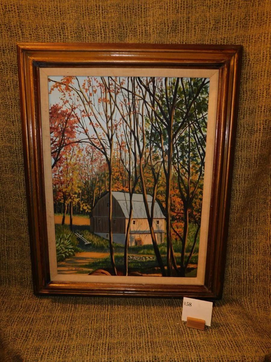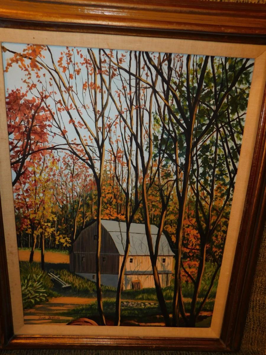 Framed Autumnal Barn Painting by Joan Johnson 30.75”x25”