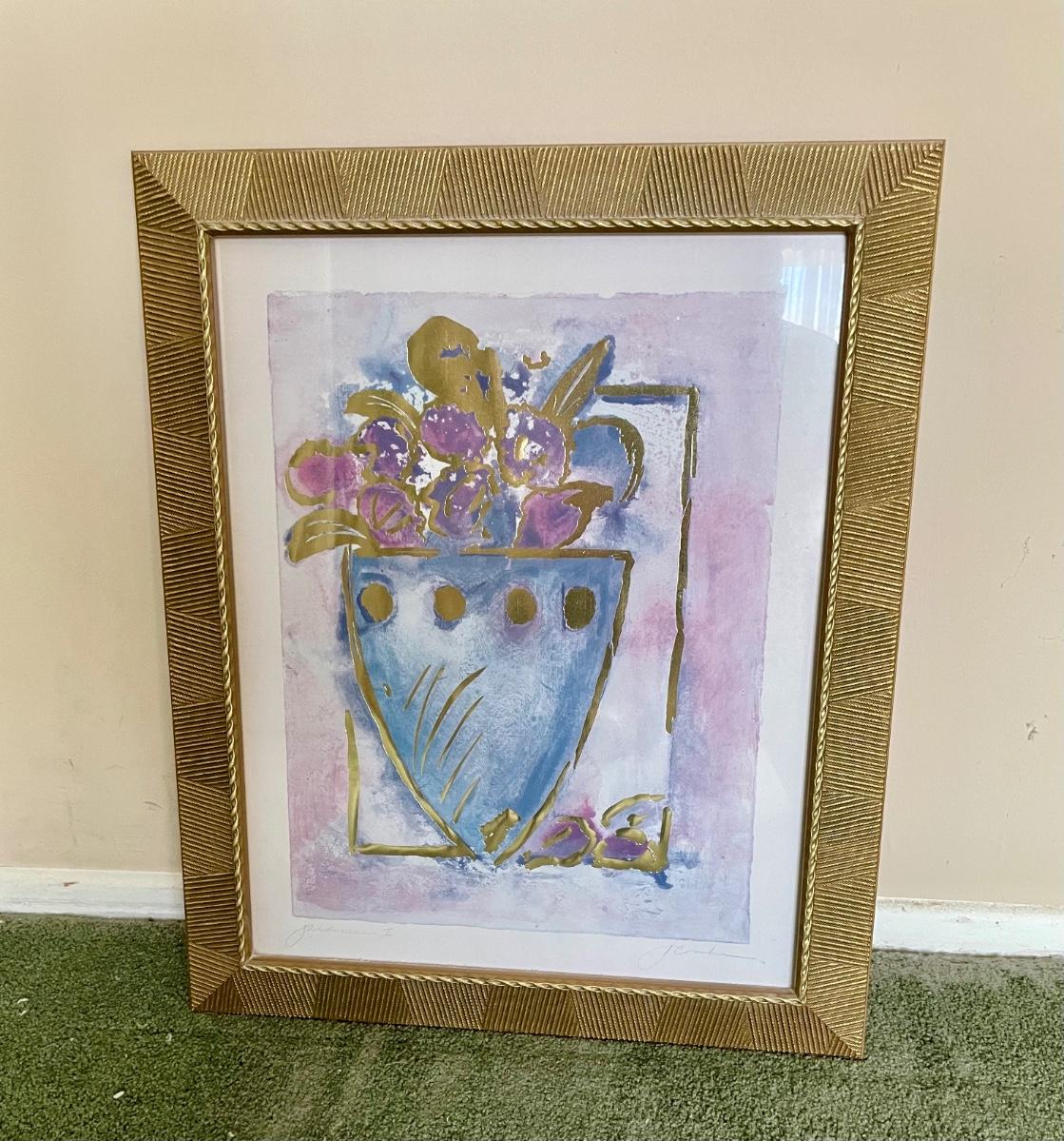Still-life Print by Joyce Combs - Jardiniere 1 - Mixed Media Framed signed