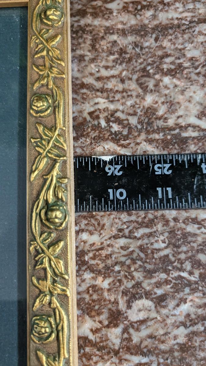 This is a Framed Bathroom Art Soap Bubble Bath Antique Tub Roses Lace Doilies. The frame is approximately 9.25" x 11.25"