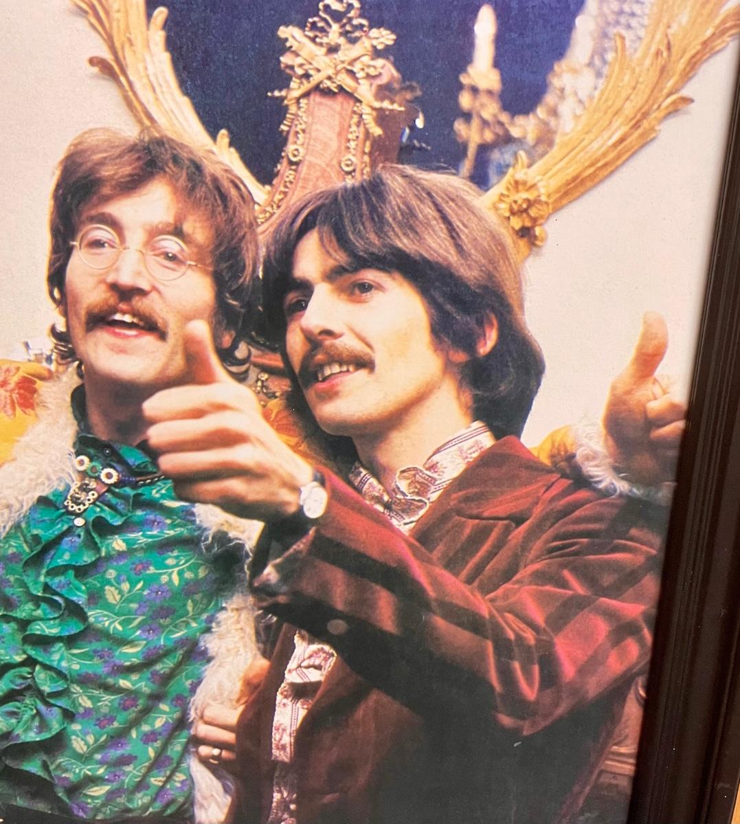 The Beatles at the Sgt. Pepper launch party, held at Brian Epstein's house on 19 May 1967
