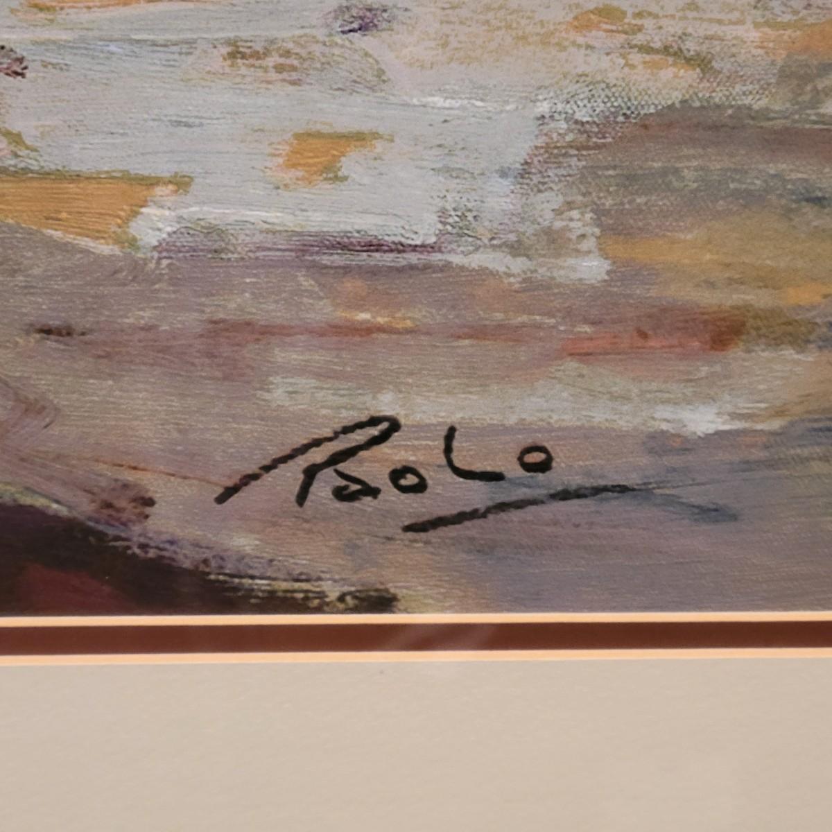 A framed print by Enrique Bolo titled "Bermuda Bay". It's framed in a double mat with a wood silver/Gold frame and measures approximately 39" x 32.5"H. Shipping available. Shipping can be costly. We suggest contacting our preferred local shipping provider, Postage Express, with dimensions and getting an estimate before bidding: (828) 670-5501 or postageexpress@yahoo.com.