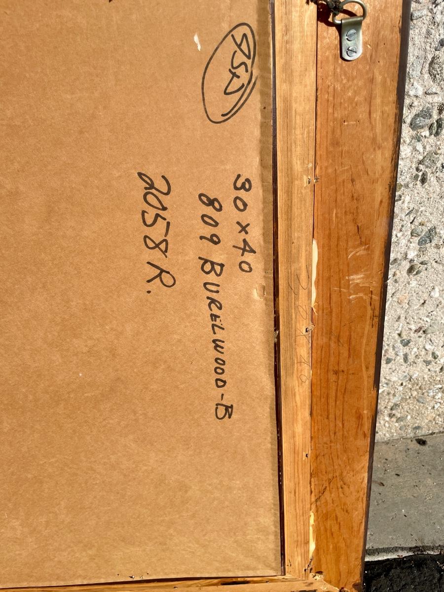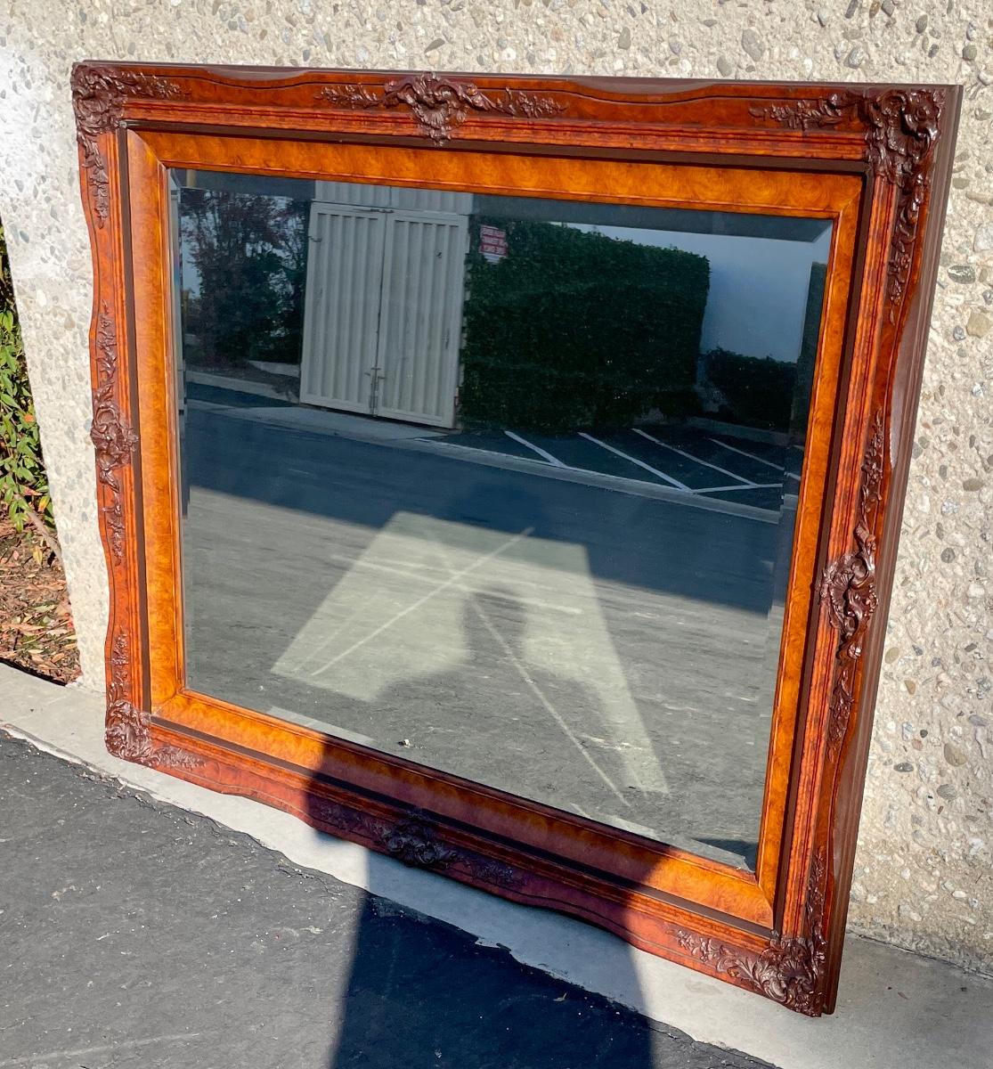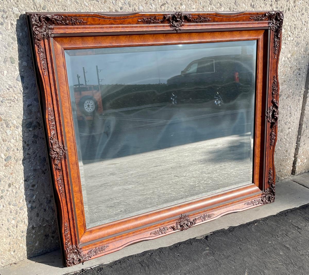 Cherry wood and Burlwood wooden frame. Measures approx. 30" x 40" Good condition.