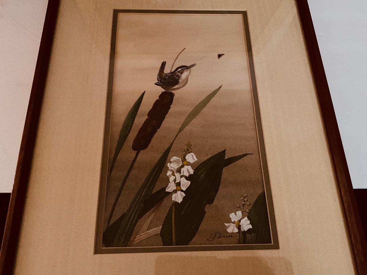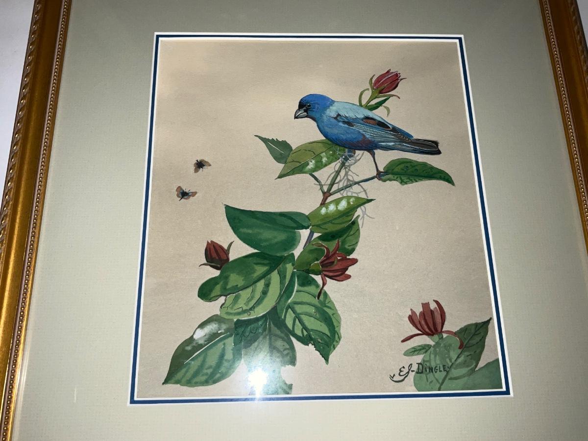Framed Bird Art Lot, Includes Marsh Wren Water Color by Edward Von S. Dingle