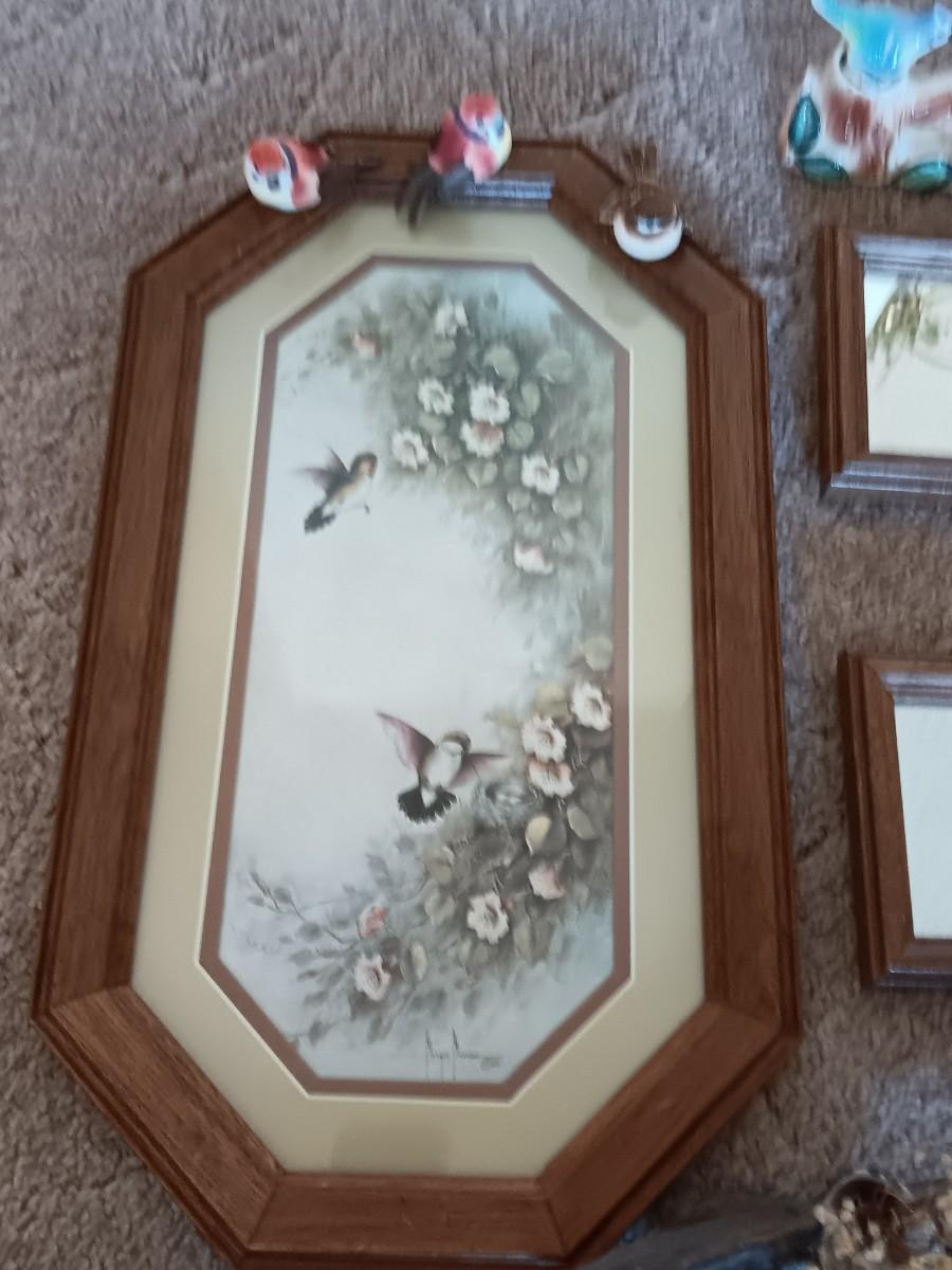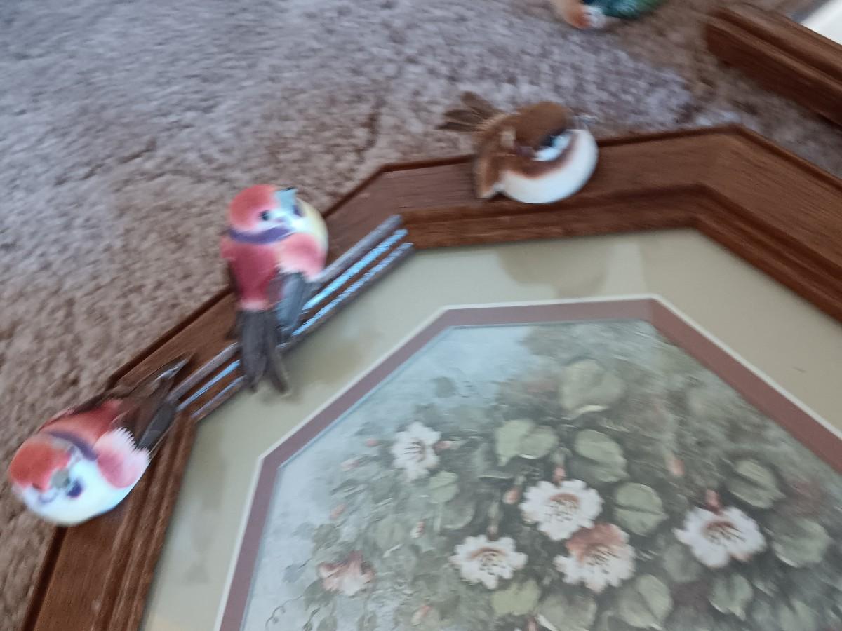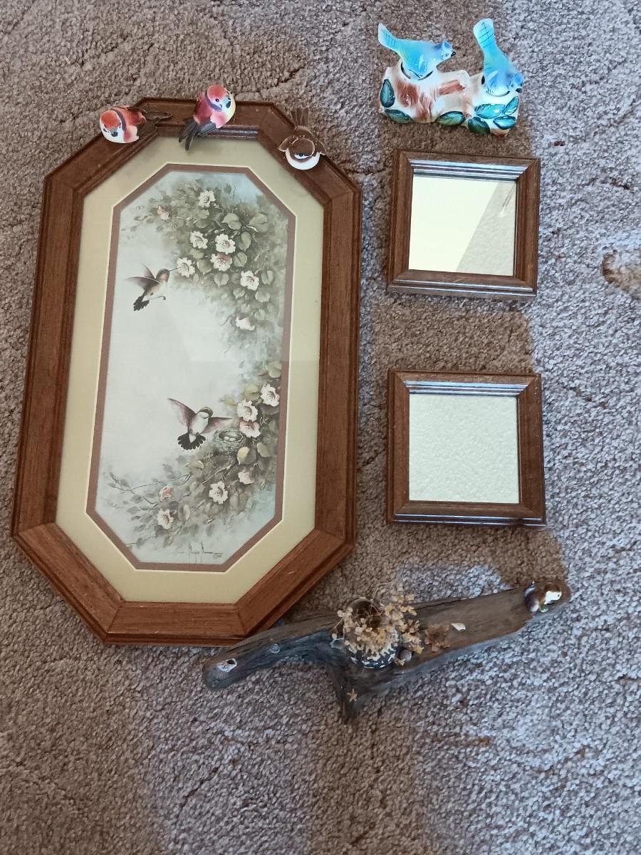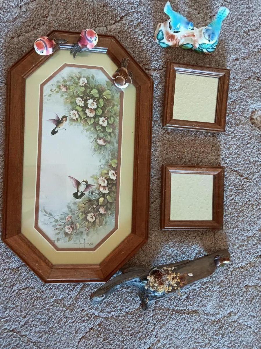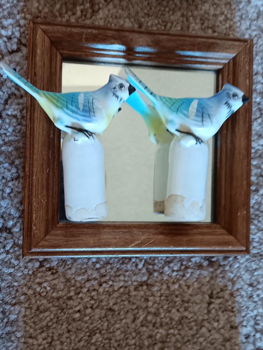 FRAMED BIRD ART WITH SMALL MIRRORS AND JAPAN BOBBLING BIRDS