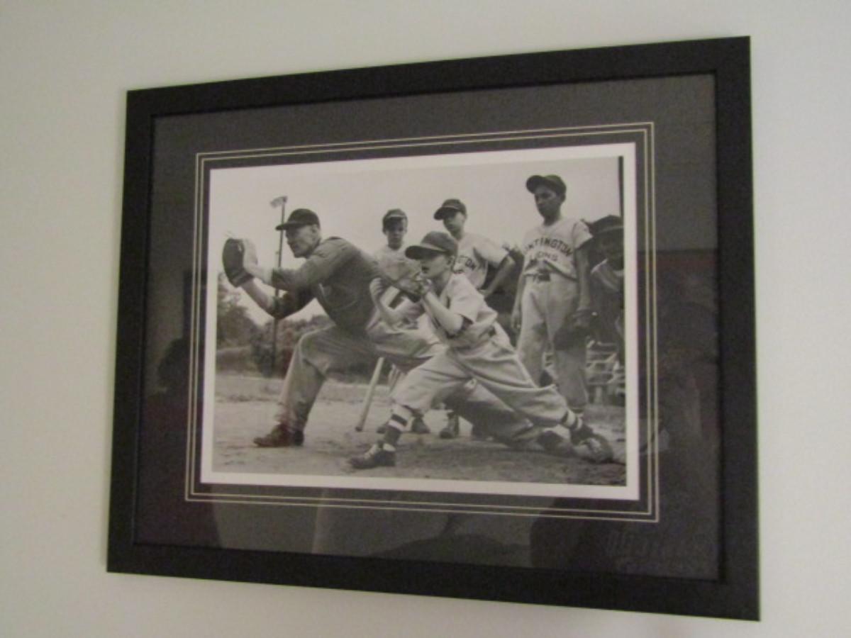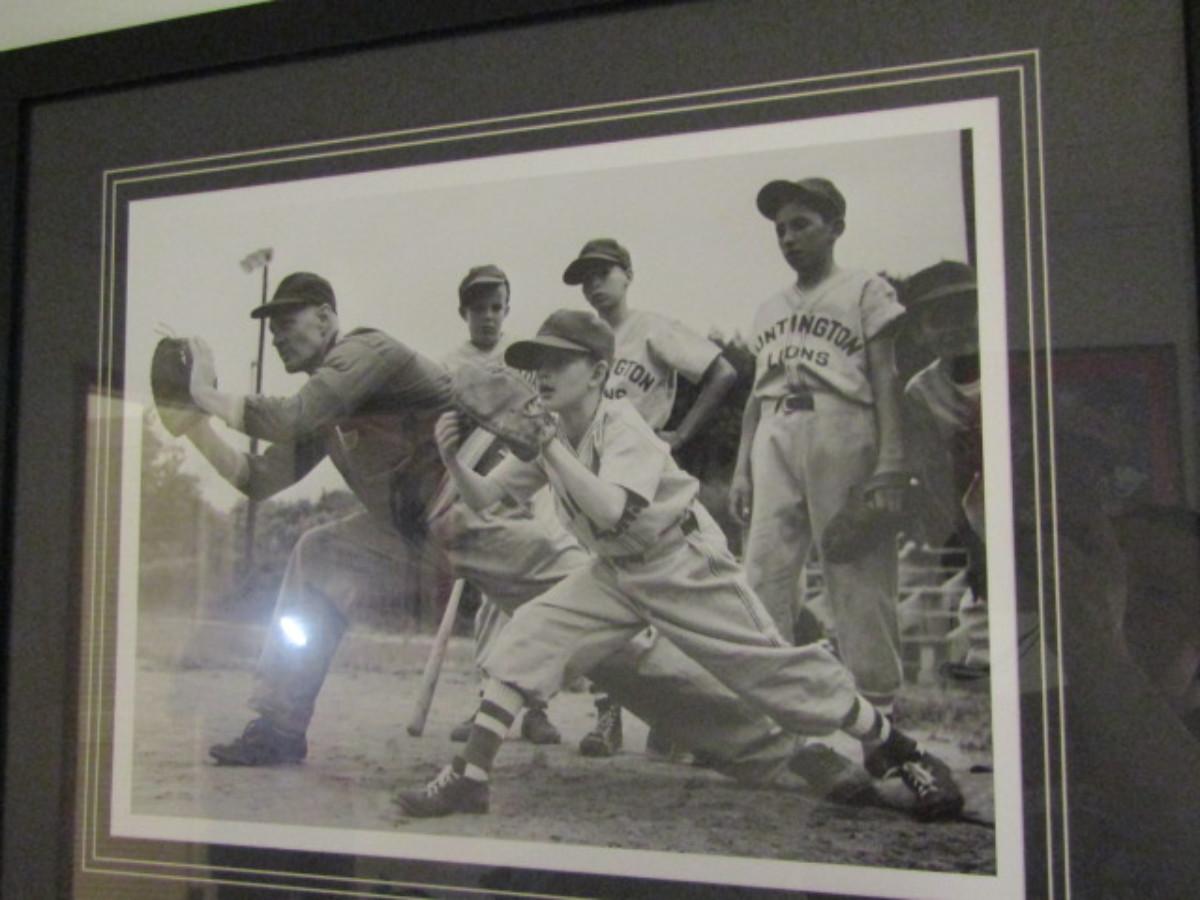 Framed Black and White Print of Young Baseball Players- Approx 21" x 26"