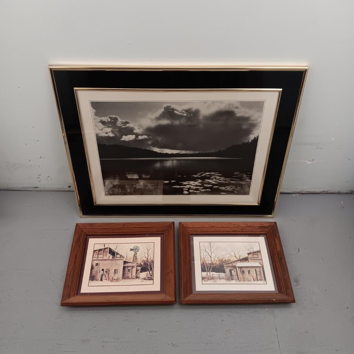 FRAMED BLACK & WHITE SCENERY PHOTO PLUS 2 OTHER PICTURES