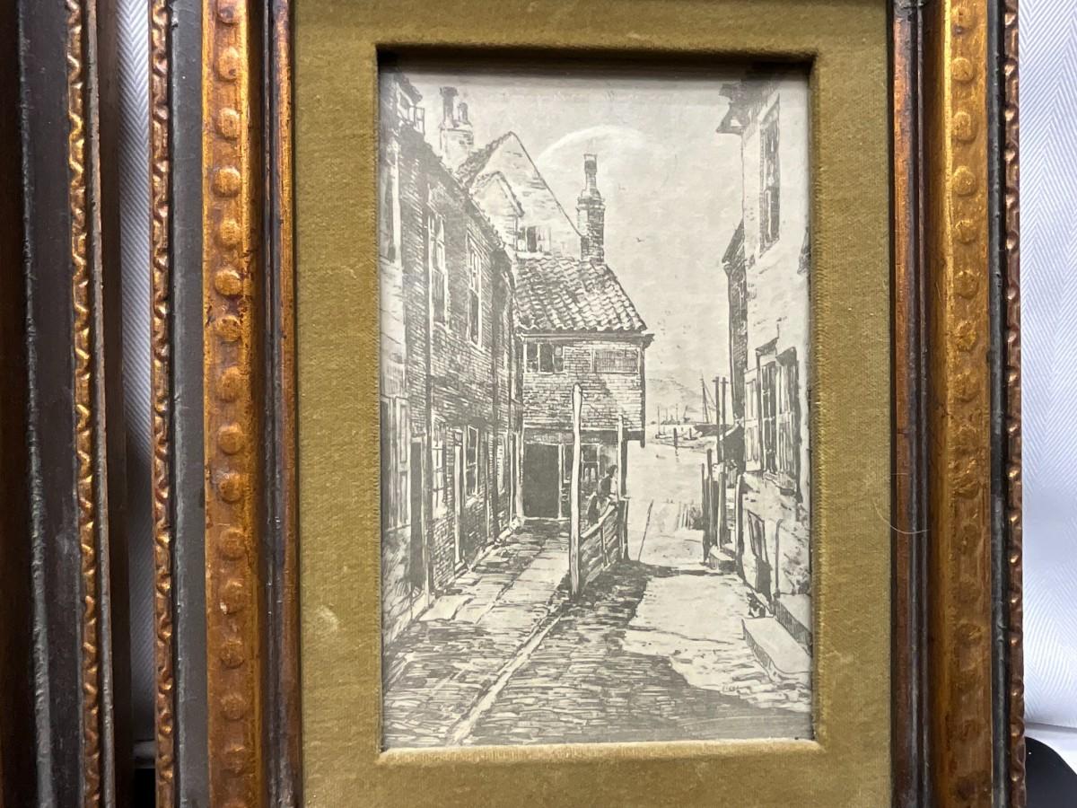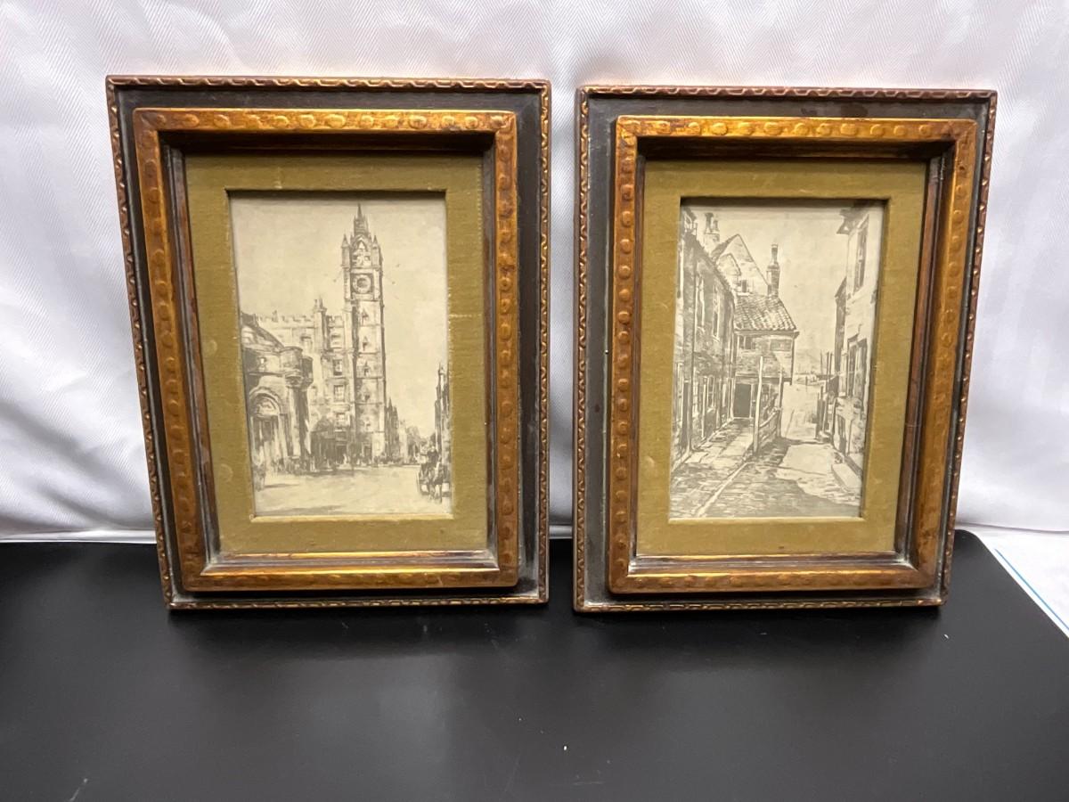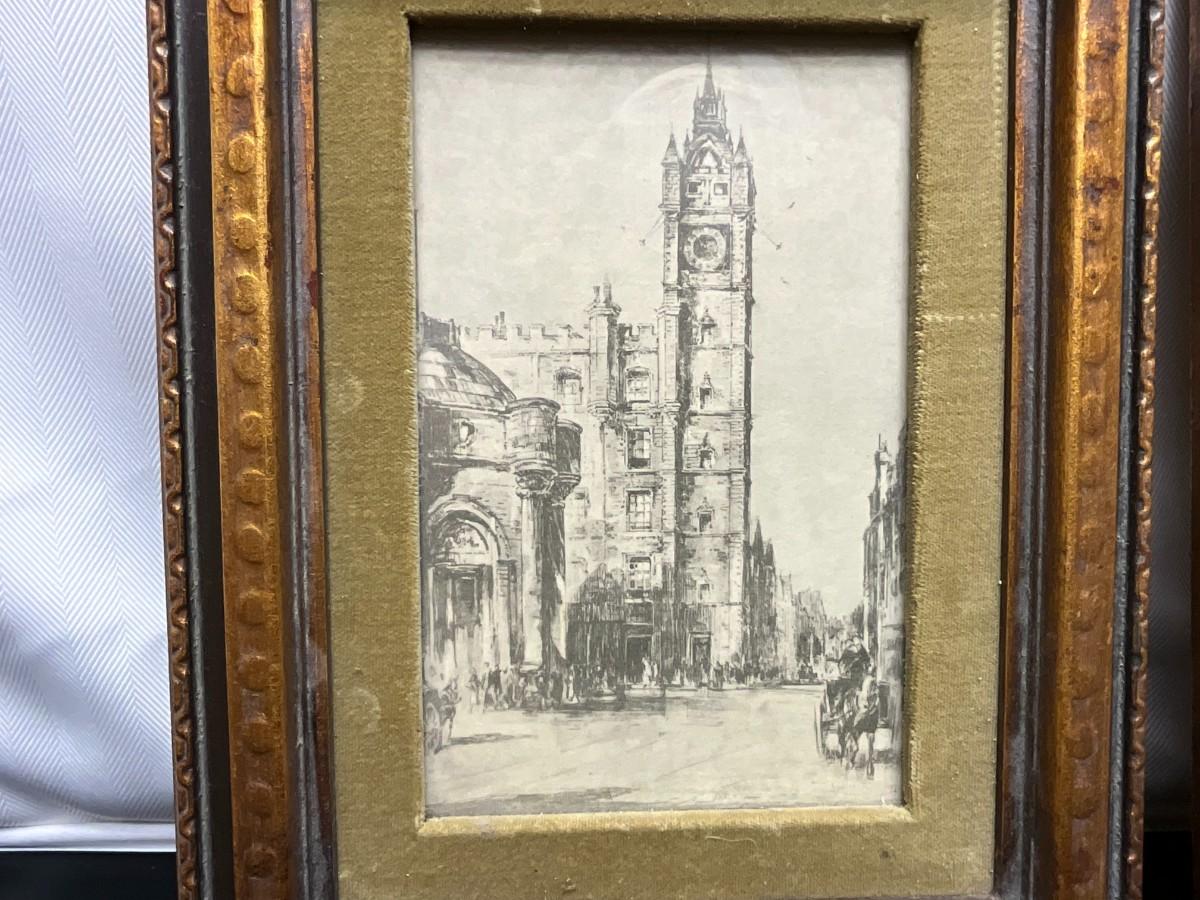 Framed Black/White Etching of Big Ben/Hs of Parliament, plus European Street