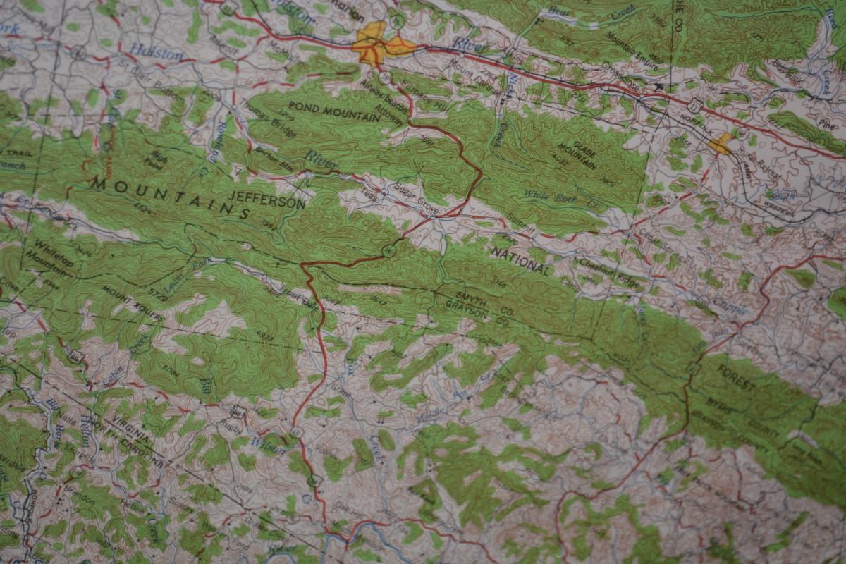 Framed Blue Ridge Mountains Map 23.5”x19.75”