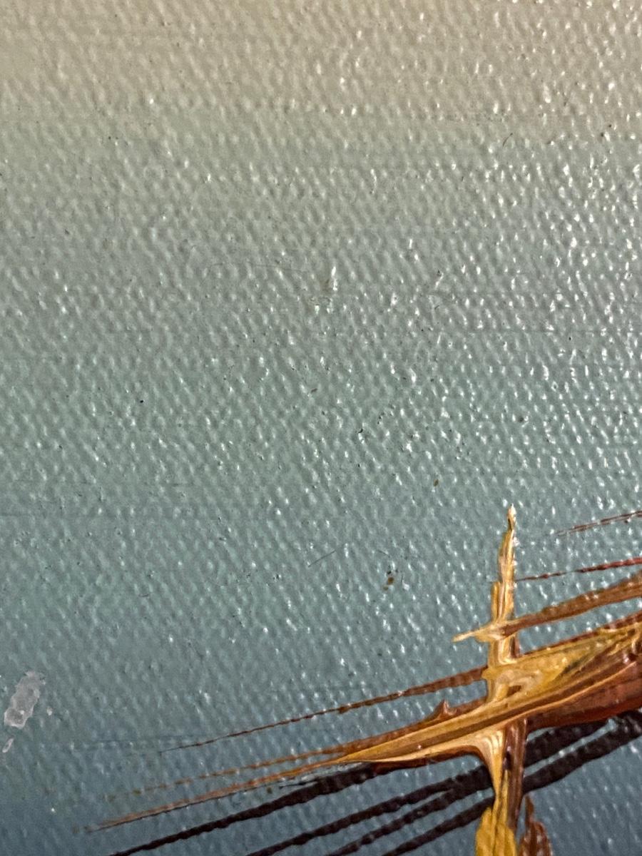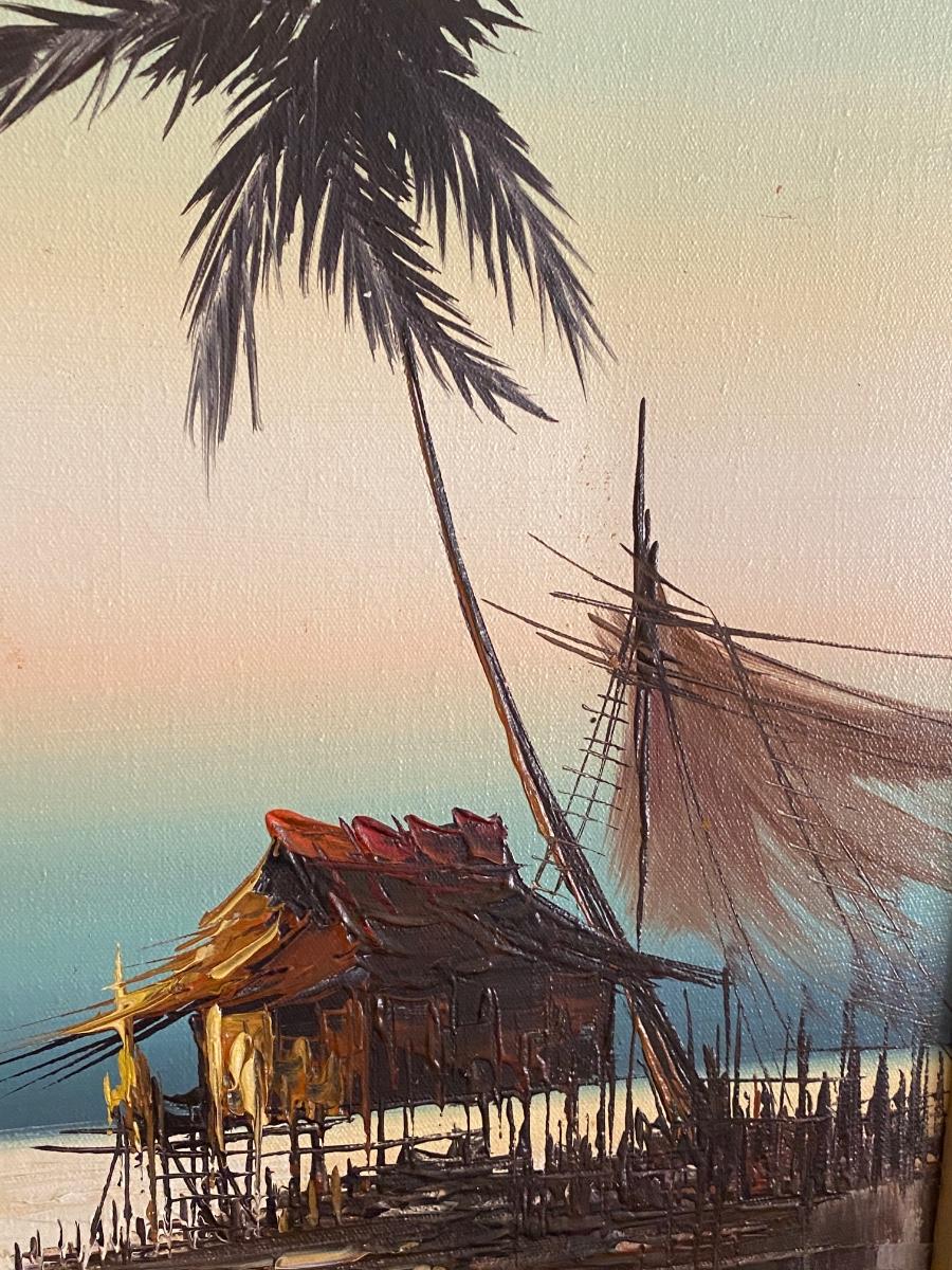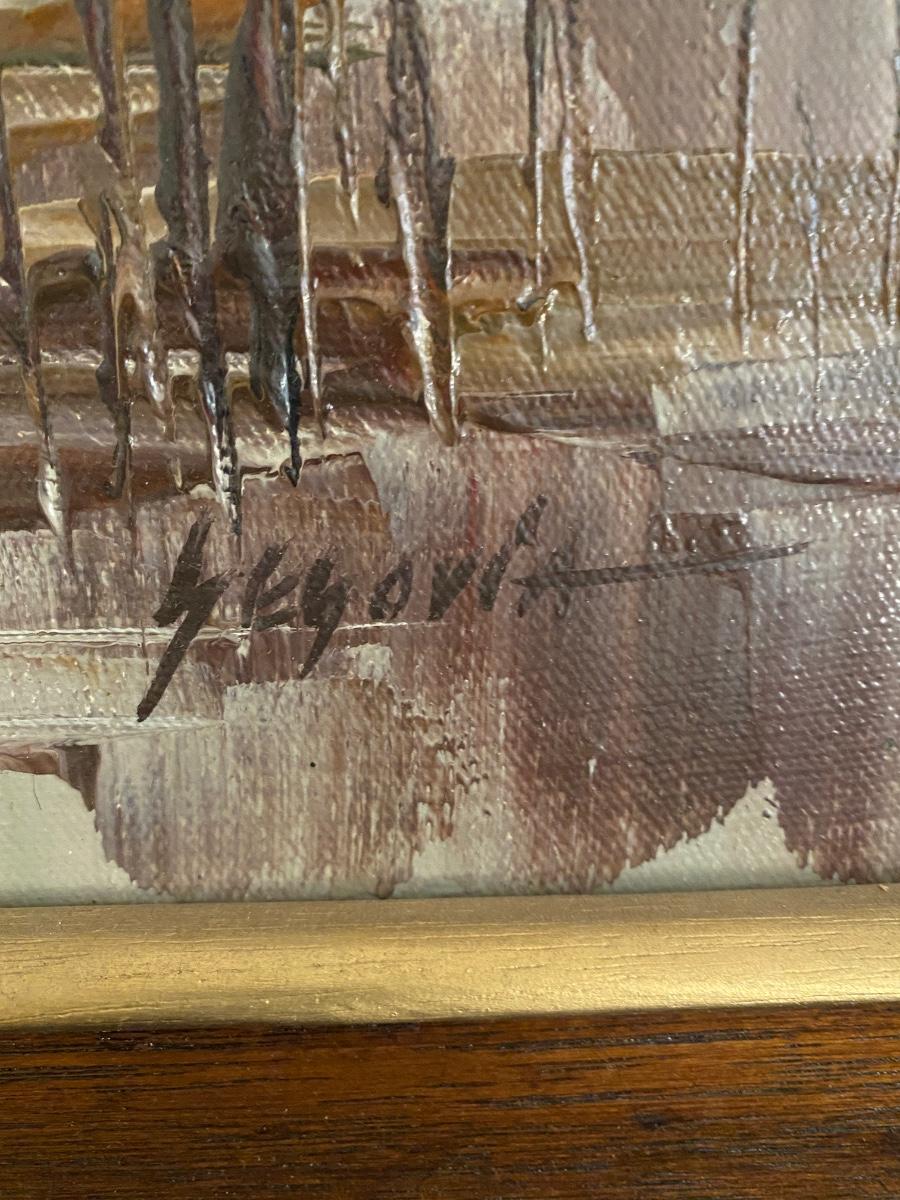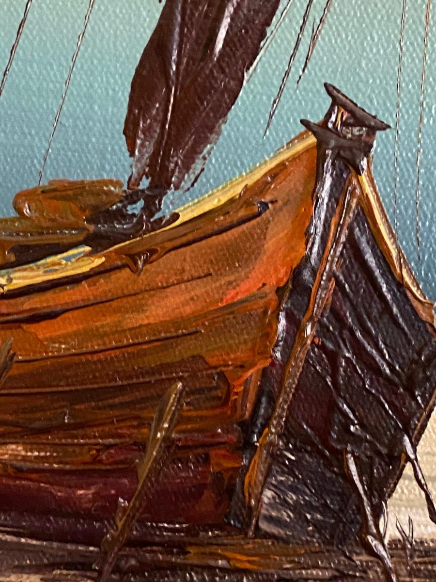 Framed Boat Scene Print, Signed, 25x30
