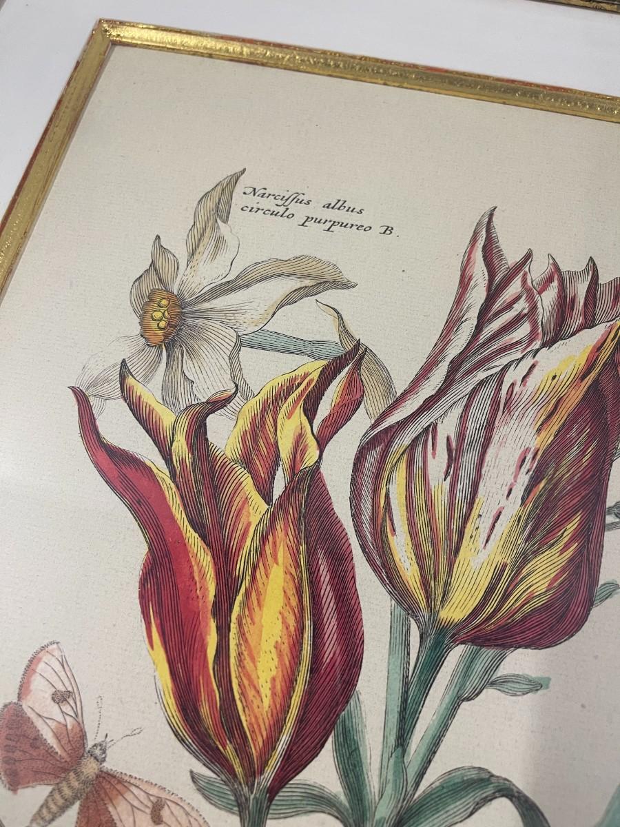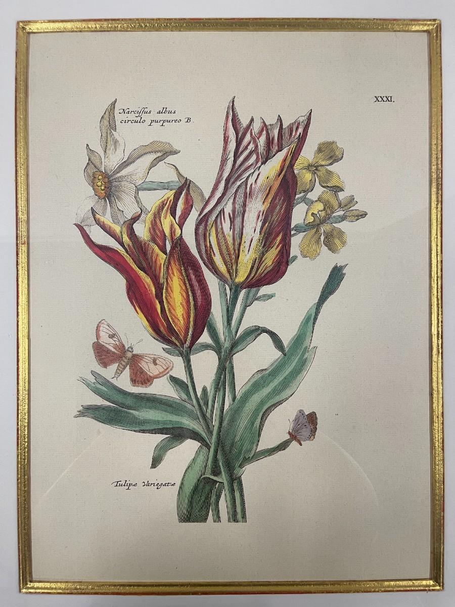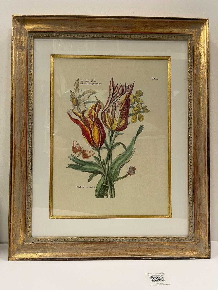 Framed botanical print, Narcissus & Tulips. Framed: 21 3/4" x 26 1/2"'; Matted: 13 1/4" x 17 1/2". Excellent condition.