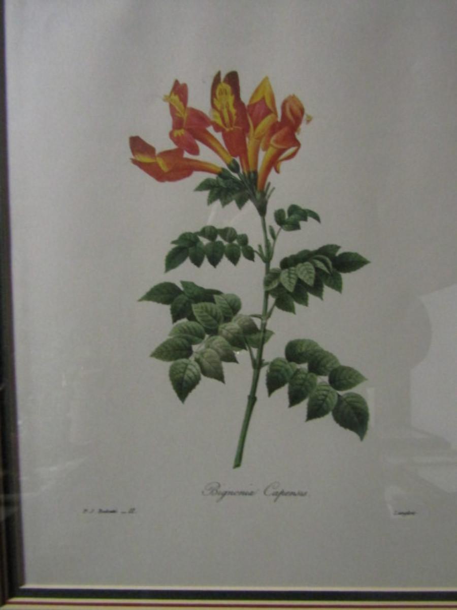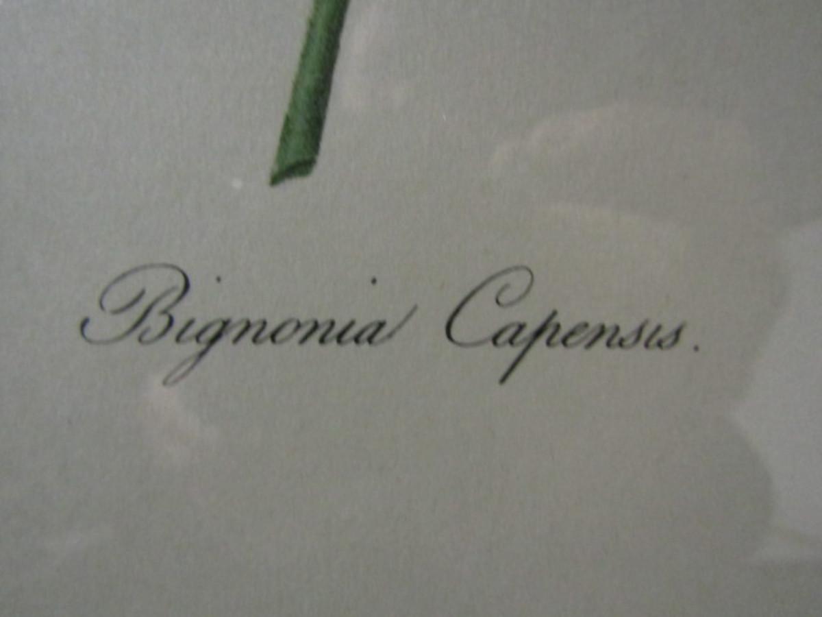 Framed Botanical Print:  Bignonia Capensis- Approx 13 3/4" x 17"  (#1)
