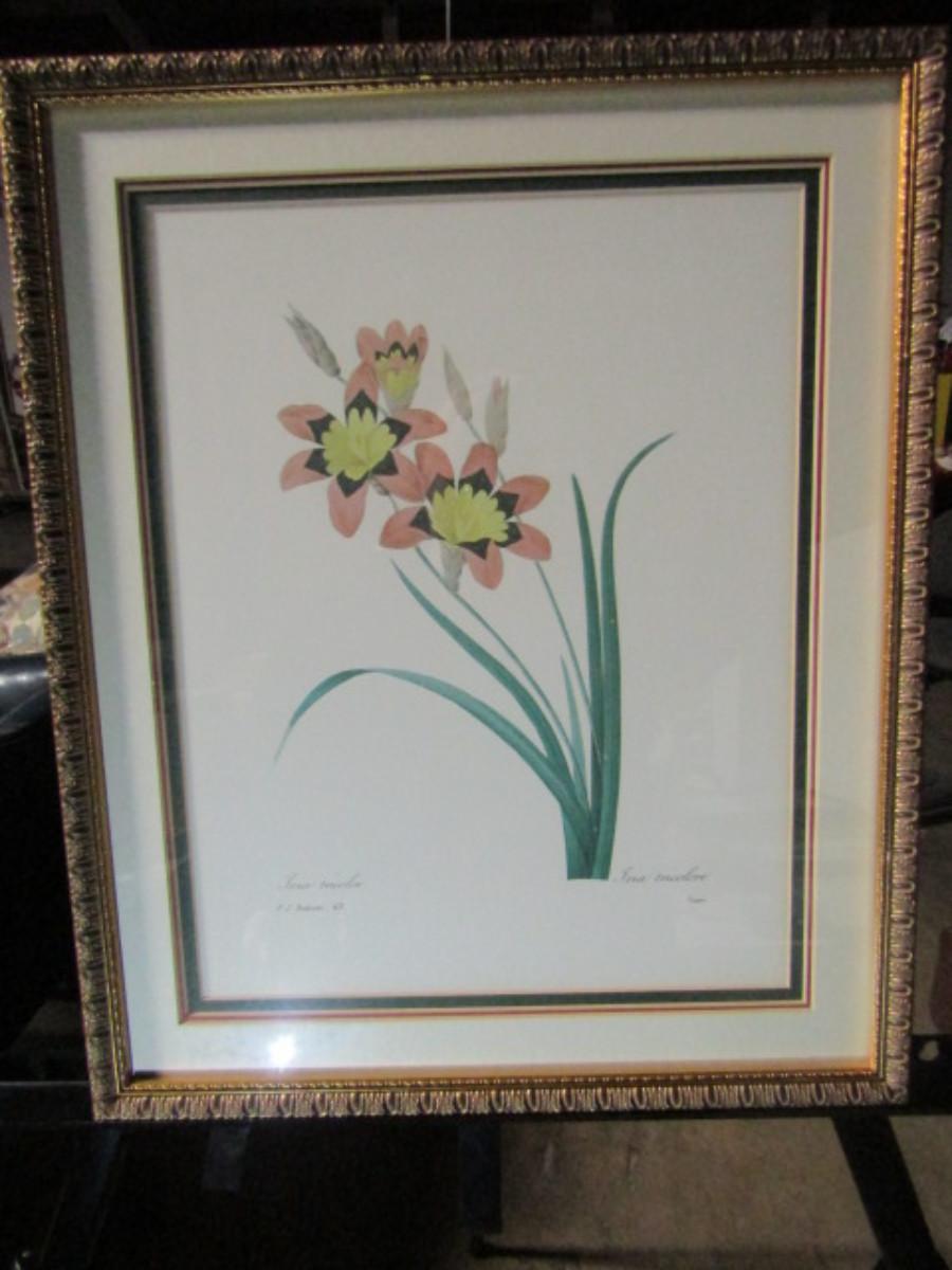 Framed Botanical Print: Ixia Tricolore by Redoute - Approx 13 3/4" x 17"  (#3)