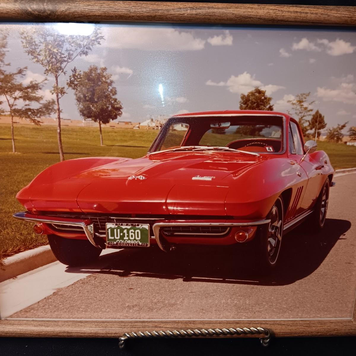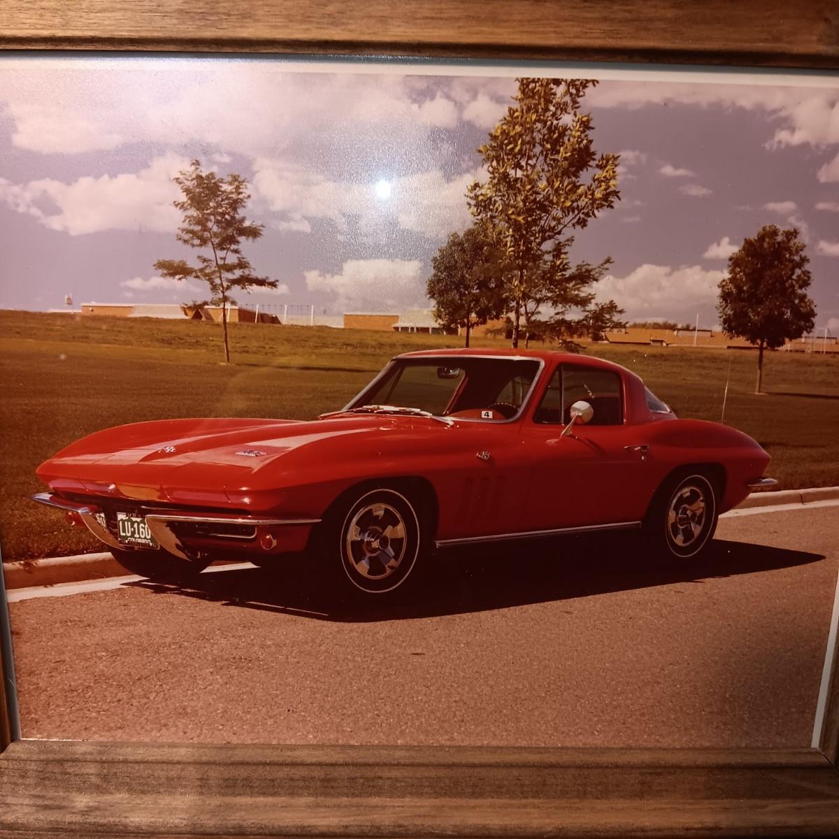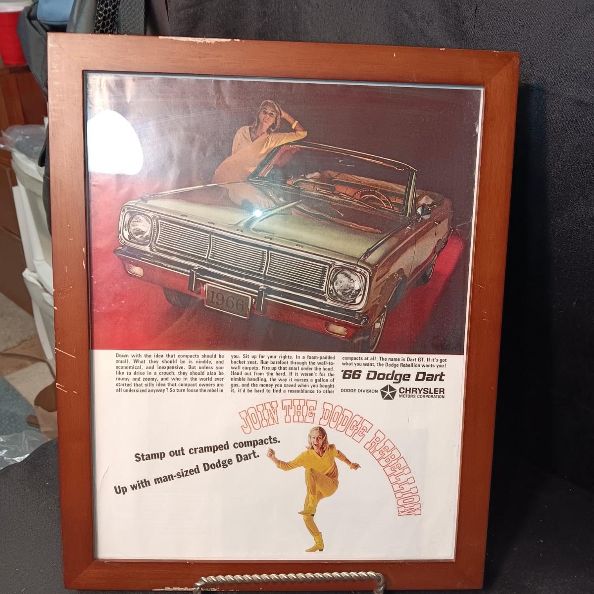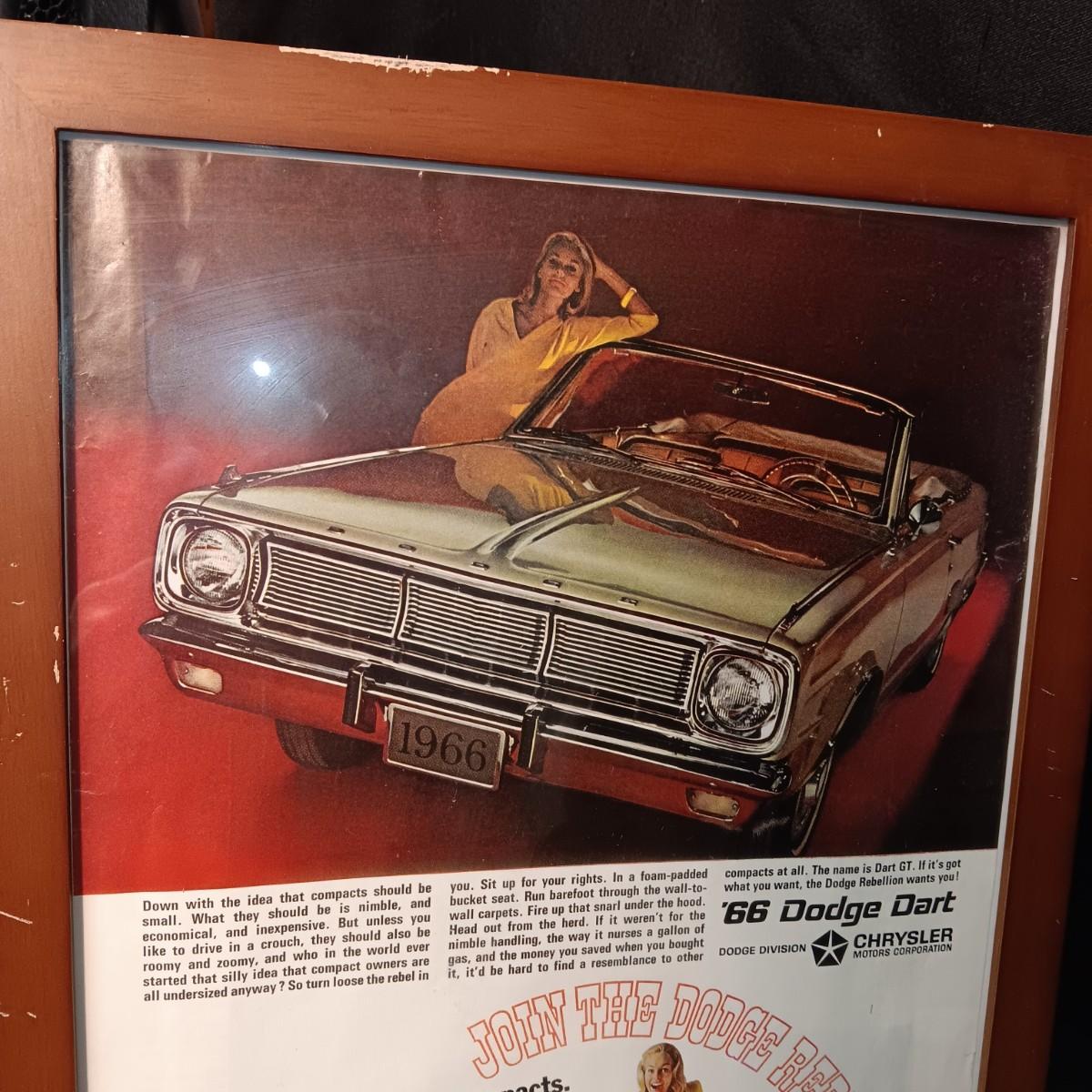 FRAMED CAR ADVERTISEMENT, 2 PHOTOS OF A CORVETTE AND A AUTO RACING YEARBOOK