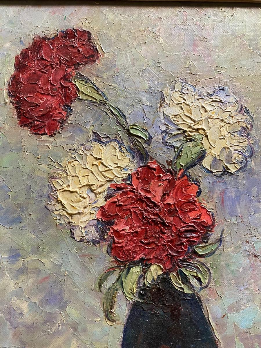 Signed and dated carnations in vase still life. Framed and ready to hang! 15"x19".