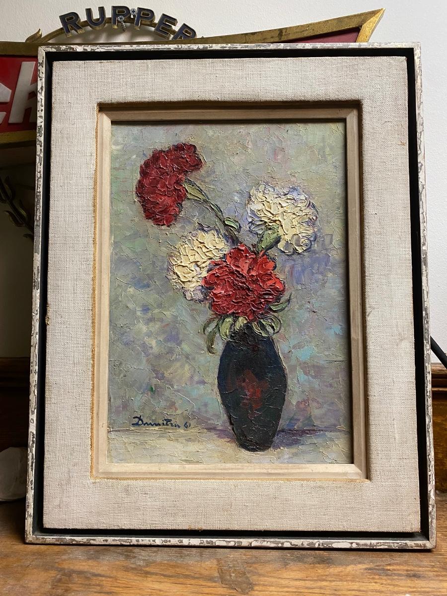 Signed and dated carnations in vase still life. Framed and ready to hang! 15"x19".