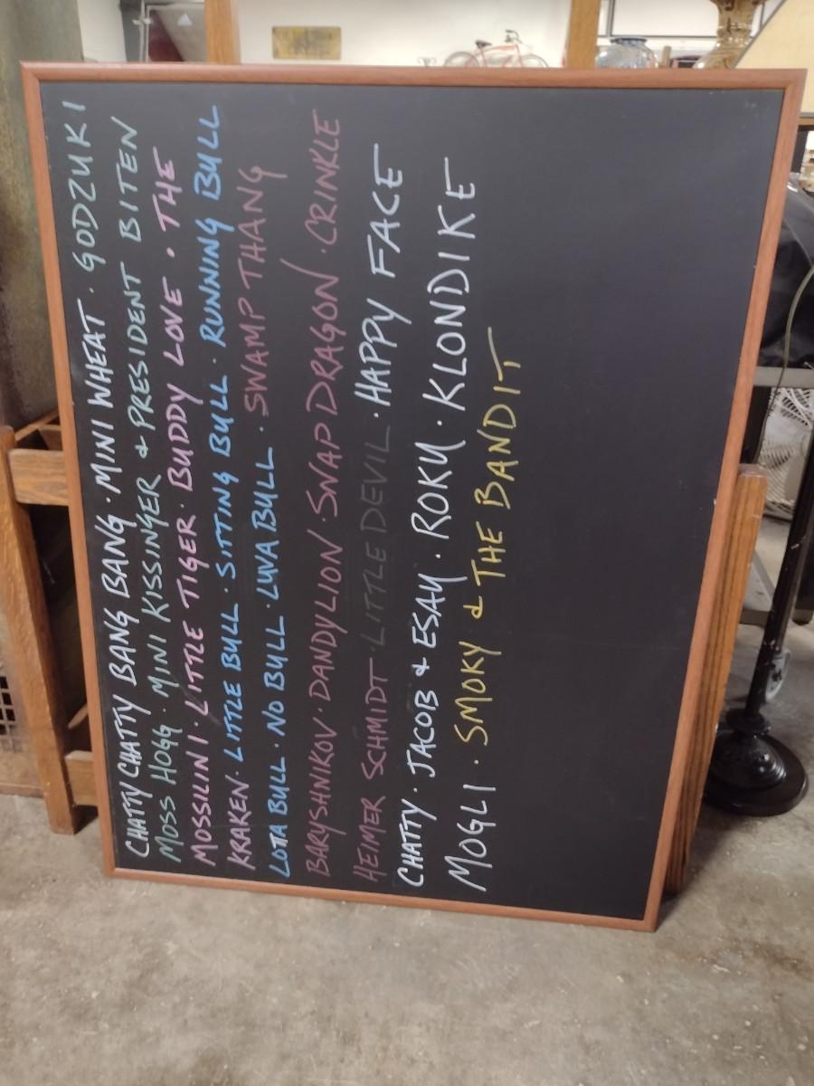Framed Chalk Board- Measures Approx 35 1/2" x 47 1/2". Board may need to be cleaned.