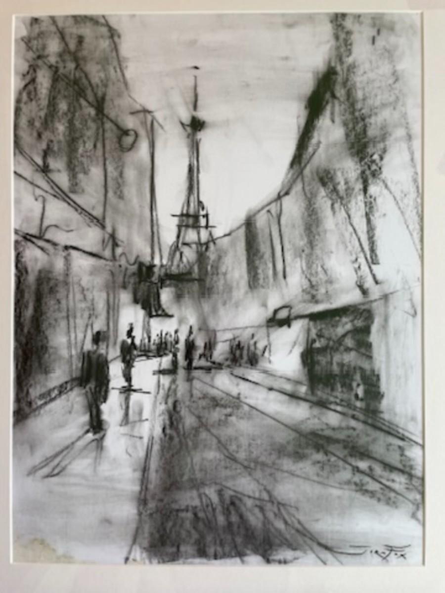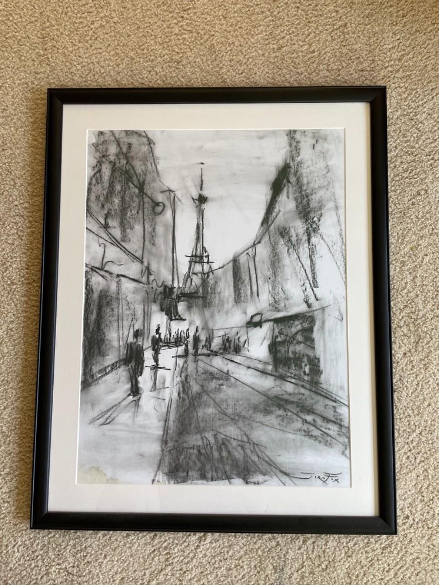 Framed Charcoal Art of The Eiffel Tower