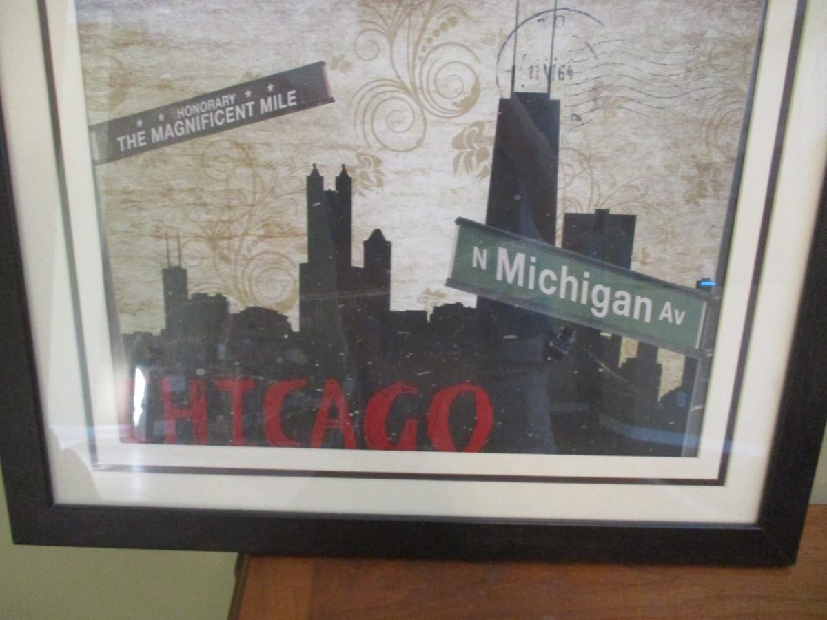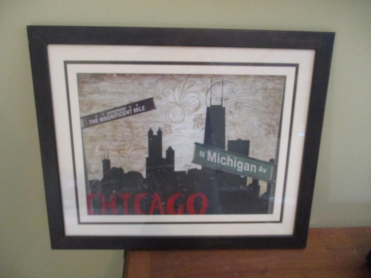 Framed Chicago Cityscape Artwork 22" x 18 1/4"