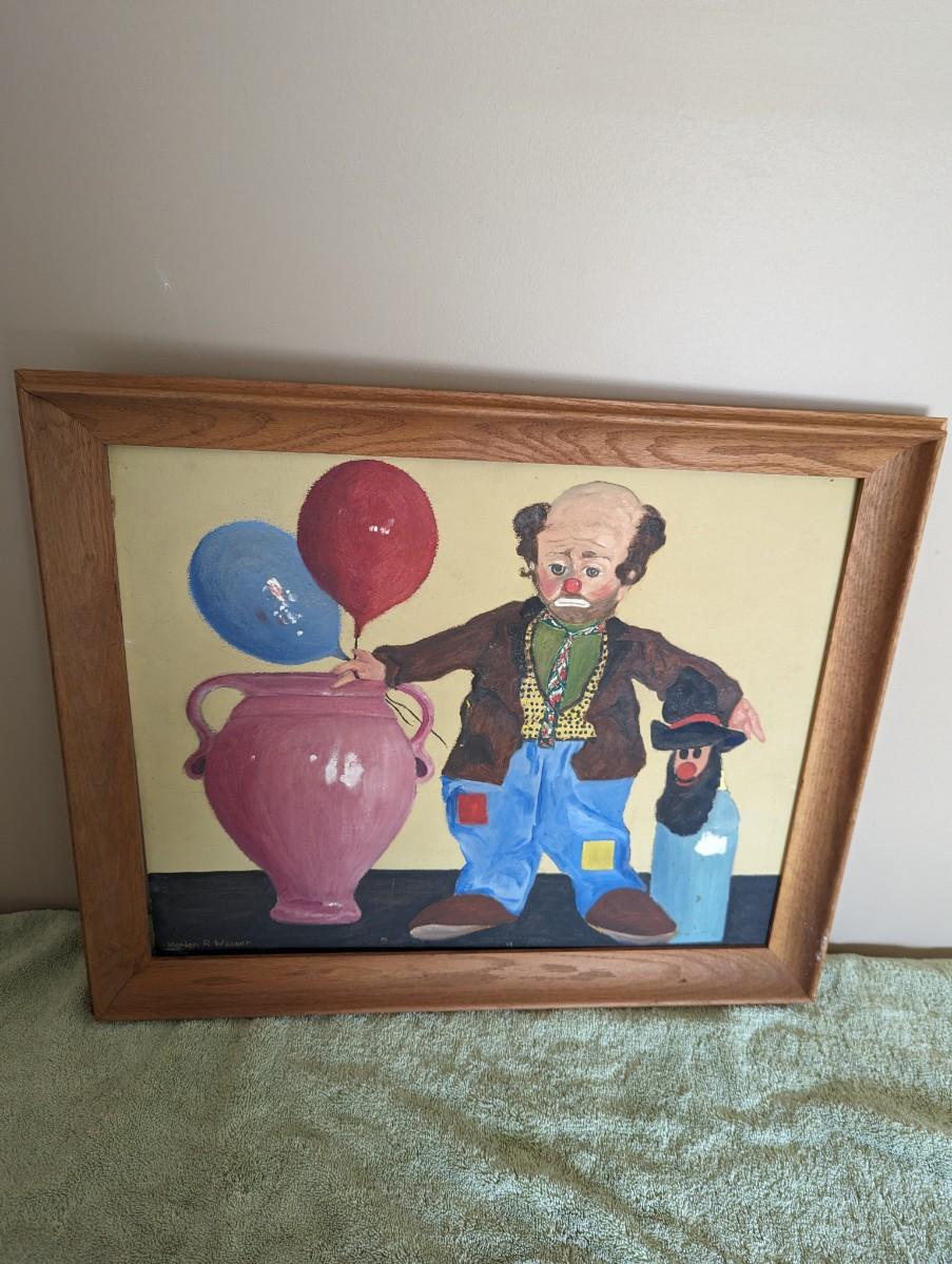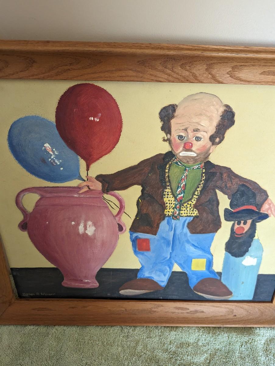 Framed Clown Painting Artist Marion R Weaver 22 1/2" x 18 3/4"
