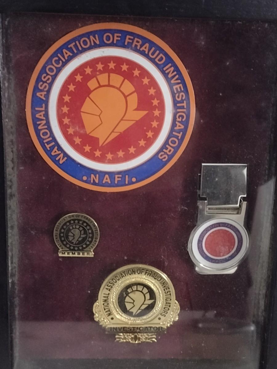 Framed Collection of Badges and Patches for NAFI National Association of Fraud Investigators (#3)