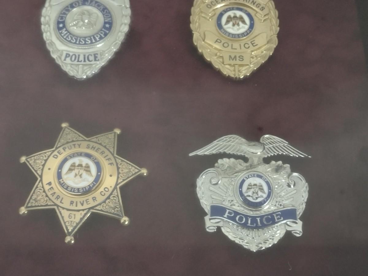 Framed Collection of Law Enforcment Badges from the State of Mississippi (#6)