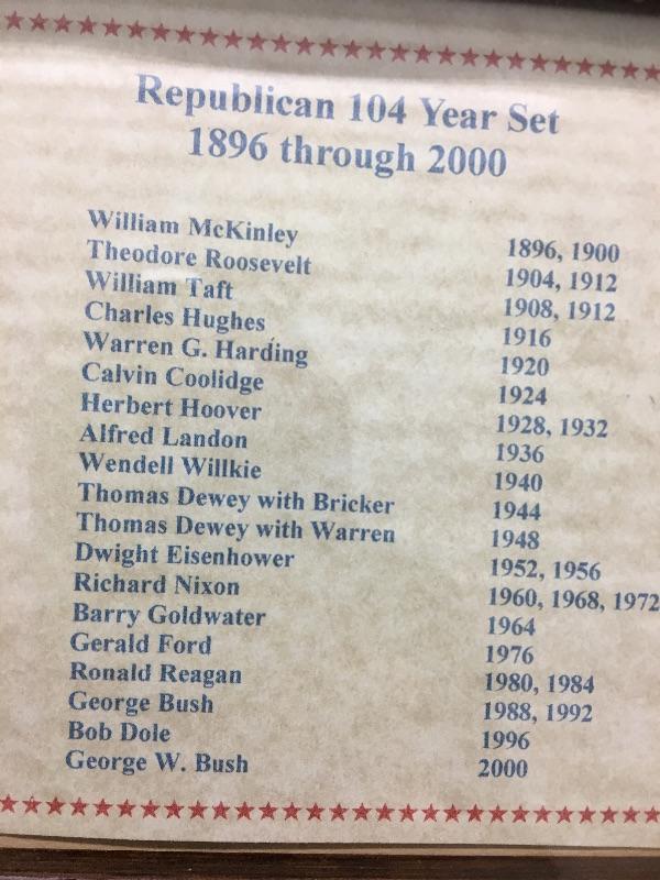 Included is the framed 104 year Republican Set plus 2 loose ones. All authentic and vintage. Condition is as shown. Measures 15”w x 25.5”h.