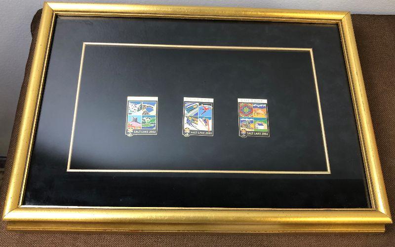 Framed Collection of Salt lake City 2002 Olympic Pins