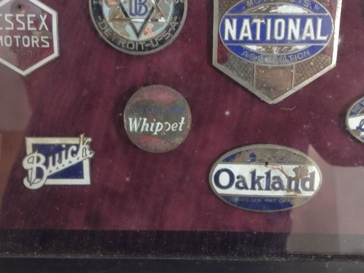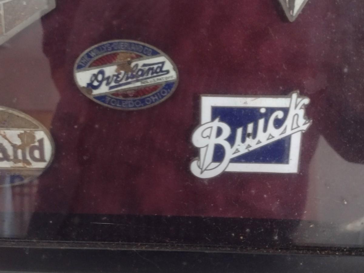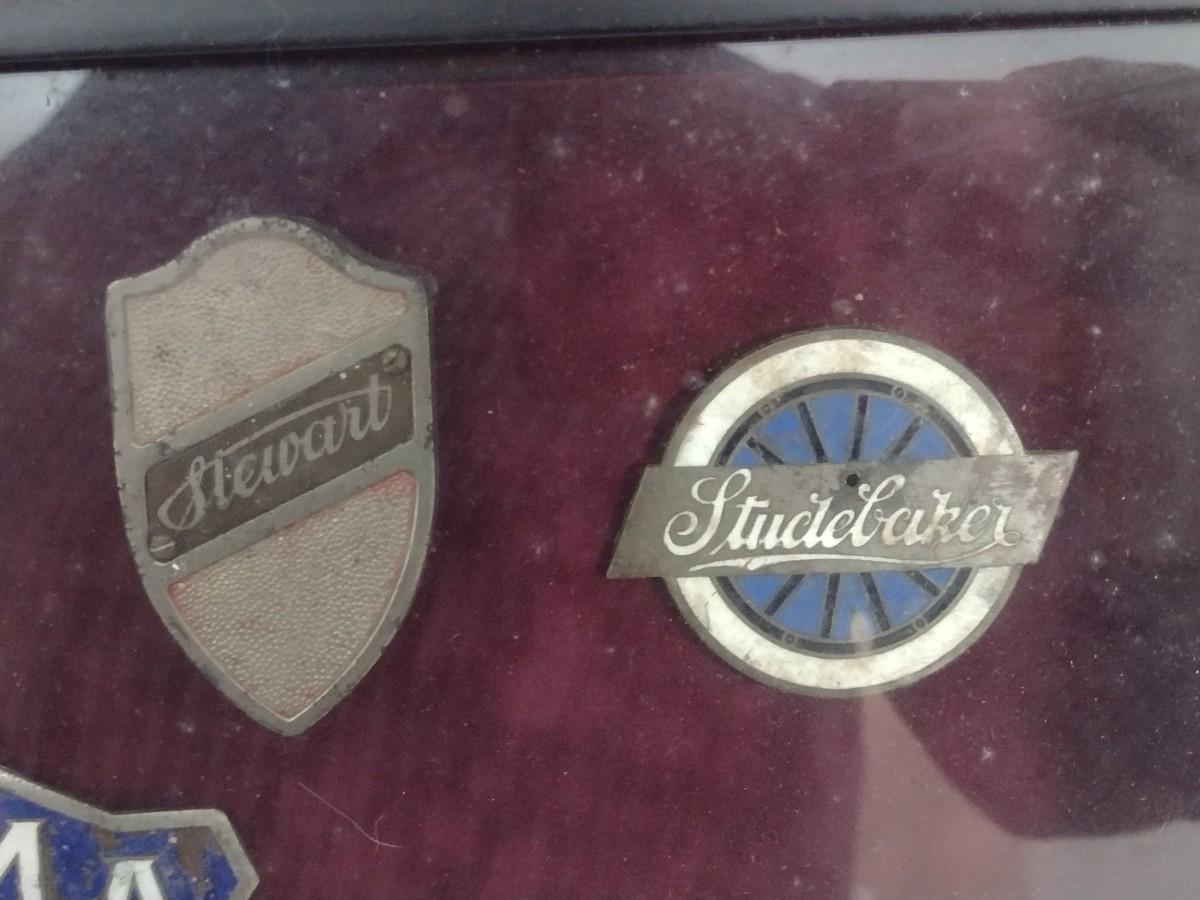 Framed Collection of Vintage Automobile Manufacturer Metal Tags Studebaker, Buick, Essex, Hudson, ETC. (#14)