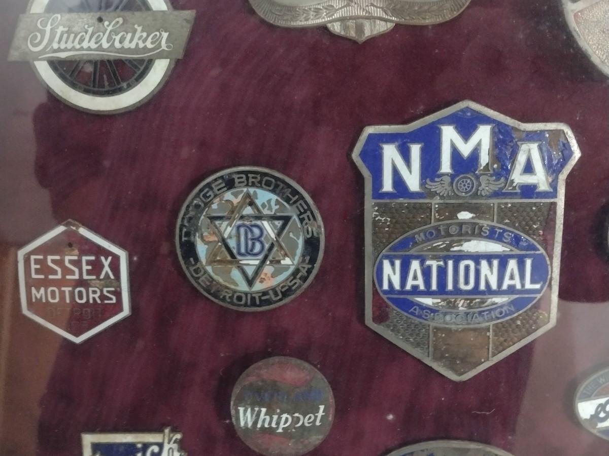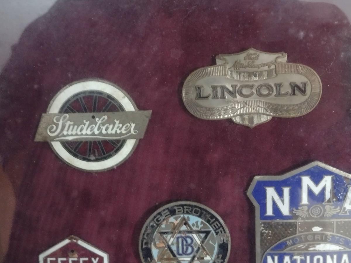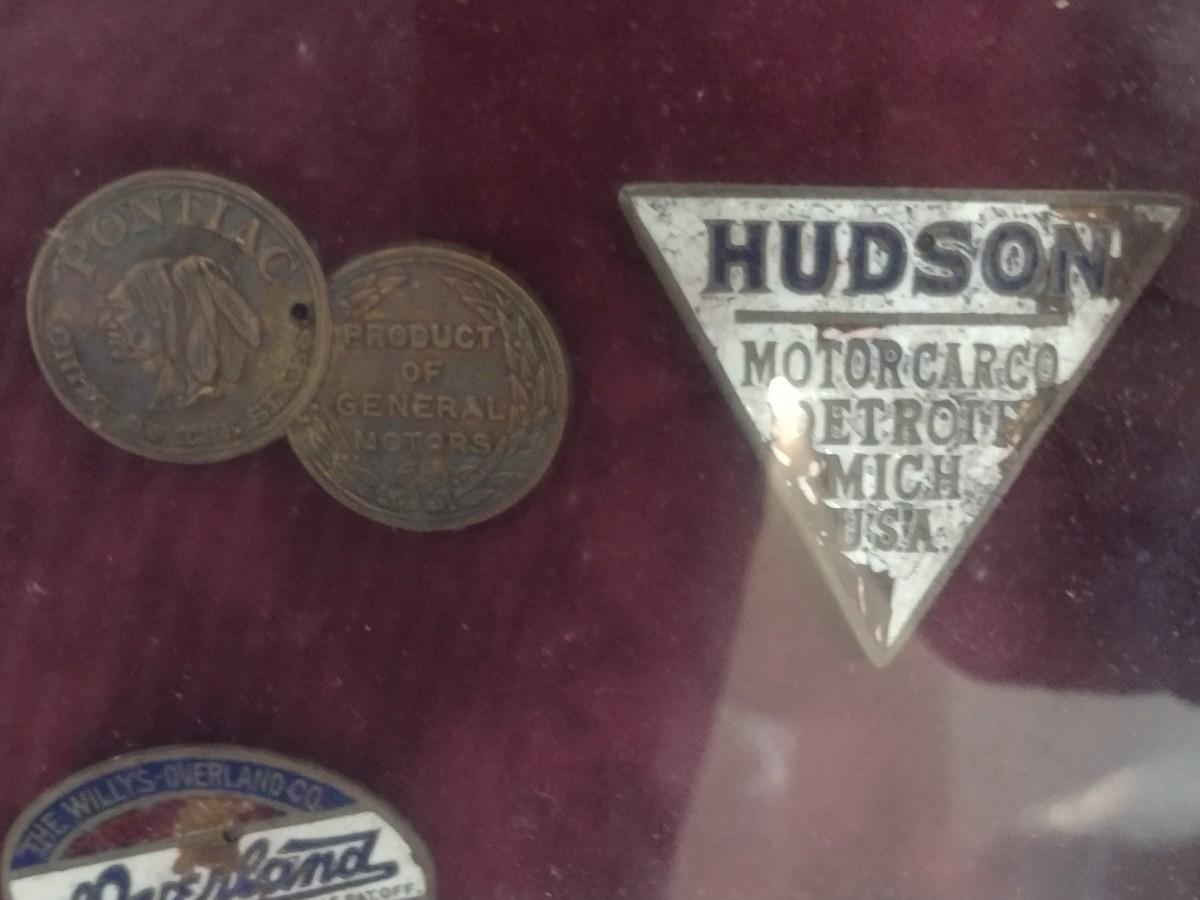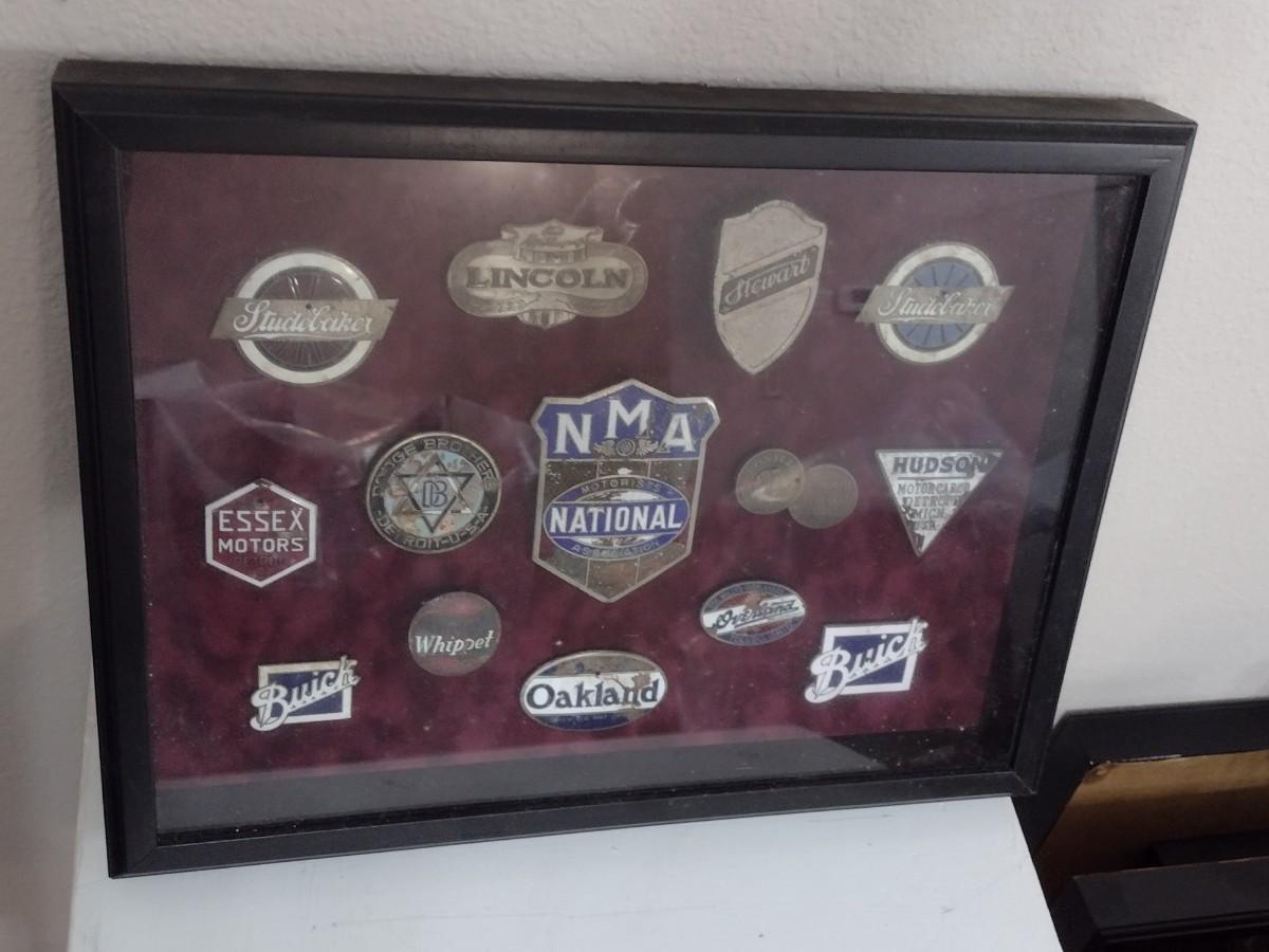 Framed Collection of Vintage Automobile Manufacturer Metal Tags Studebaker, Buick, Essex, Hudson, ETC. (#14)