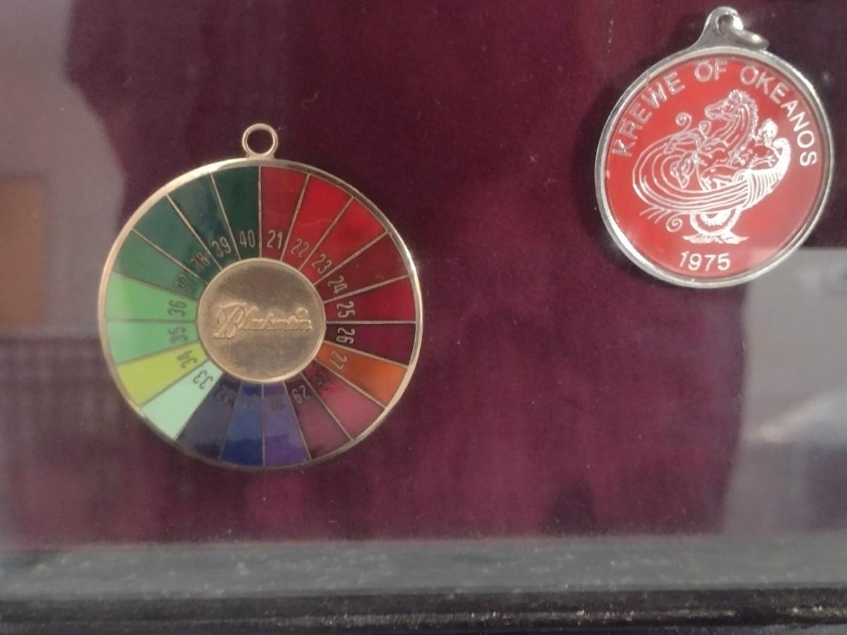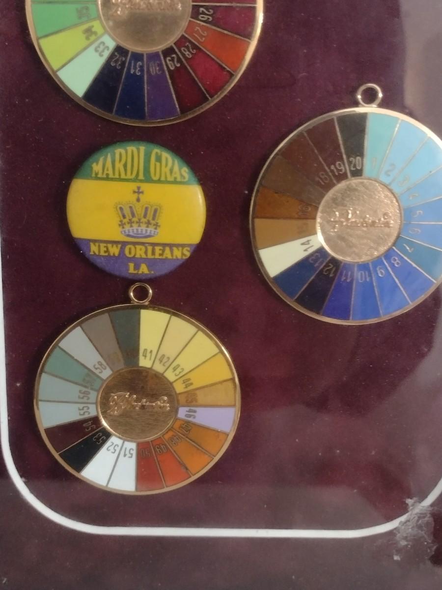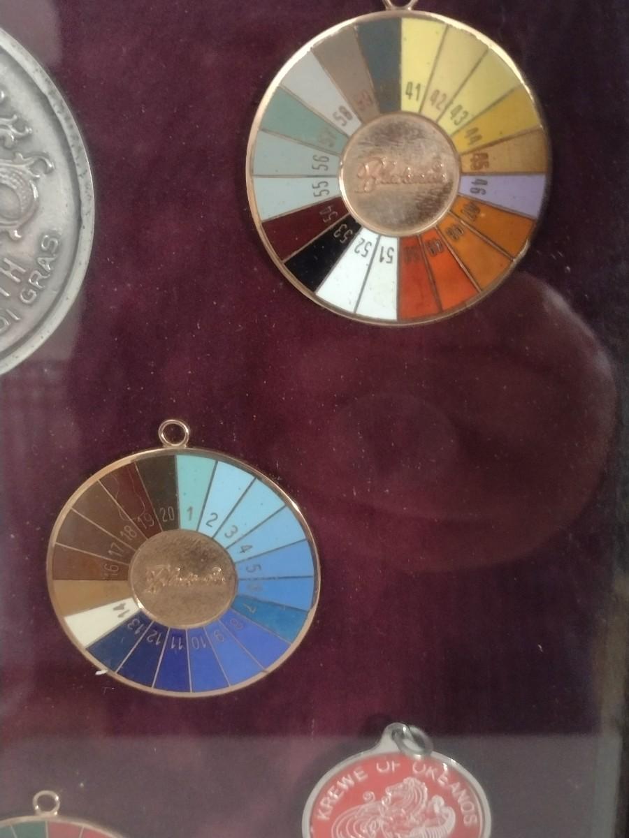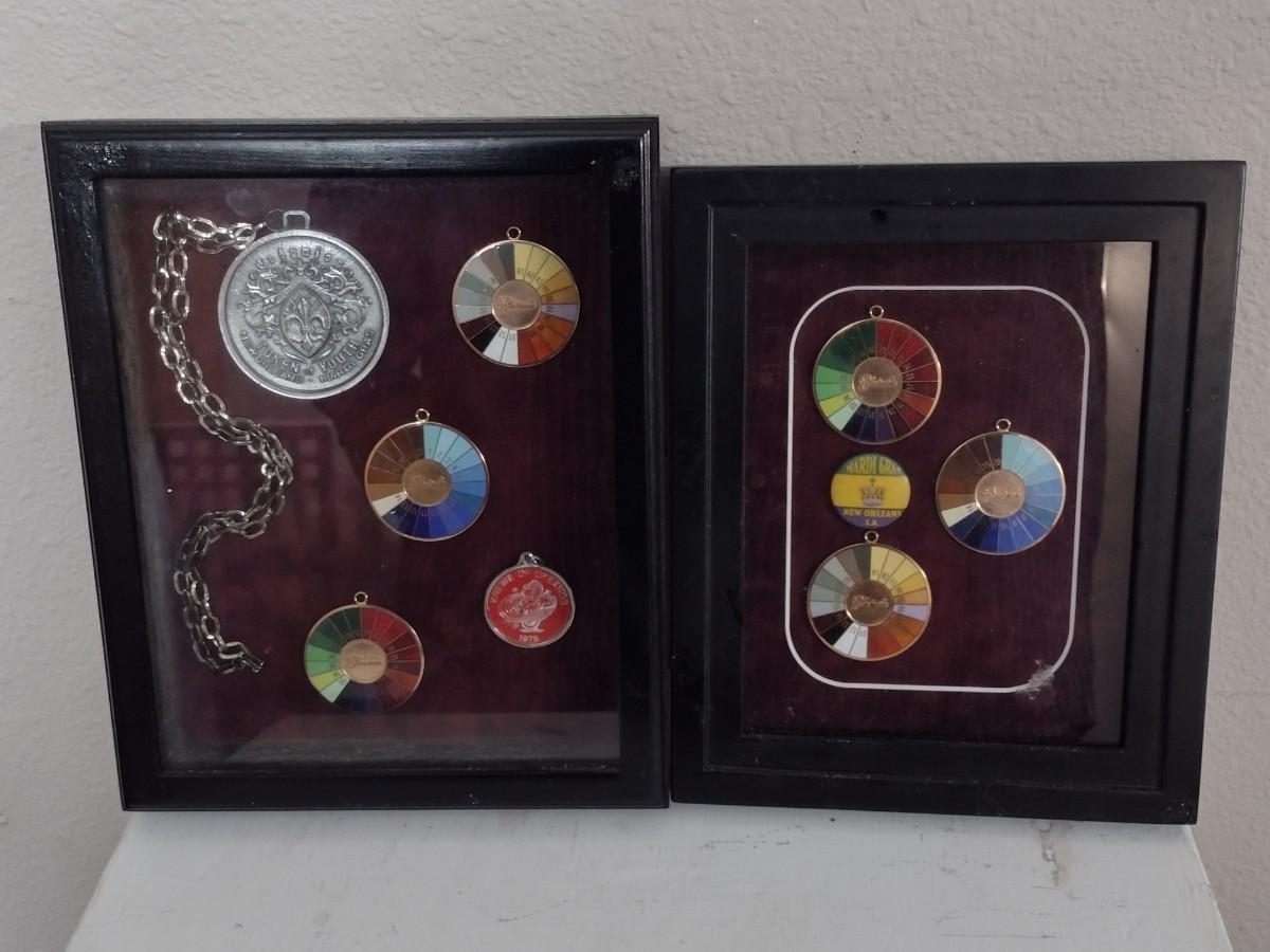 Framed Collection of Vintage Mardi Gras Rainbow Pendants (#19)