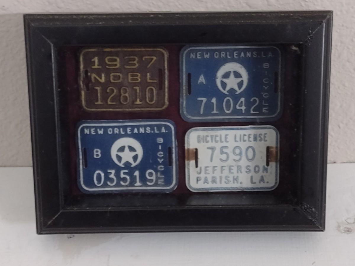 Framed Collection of Vintage New Orleans, LA Bicycle License Plates (#4)