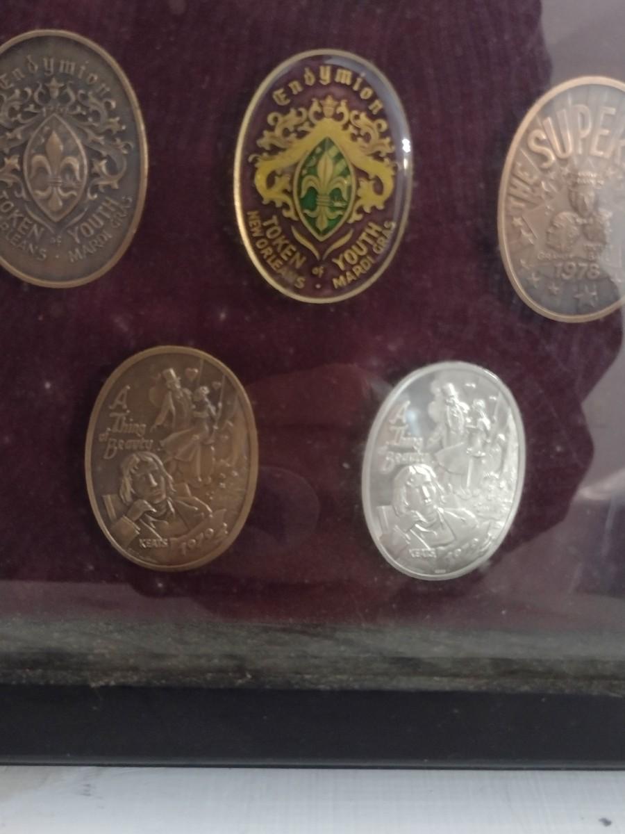 Framed Collection of Vintage Token of Youth Endymion Mardi Gras Tokens (#21)