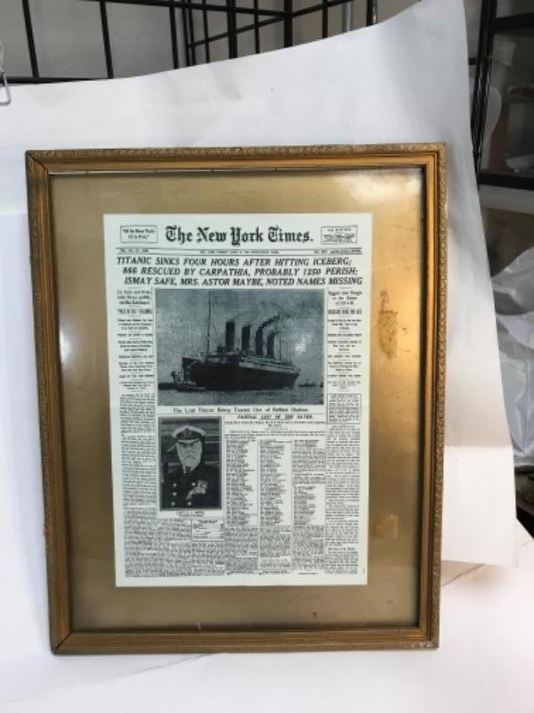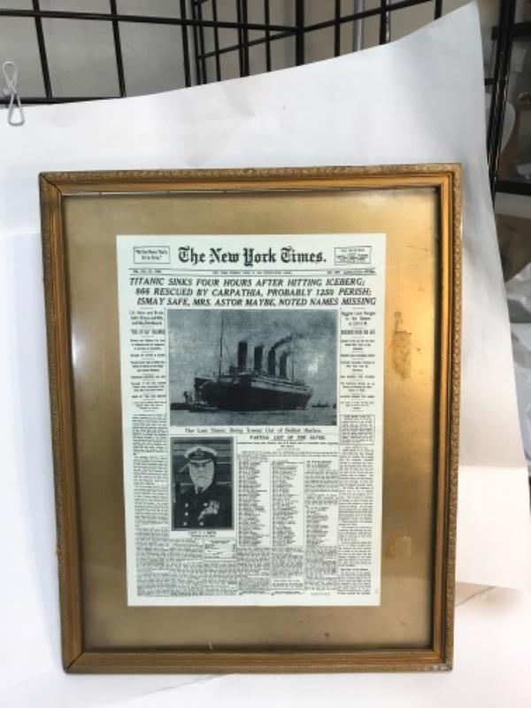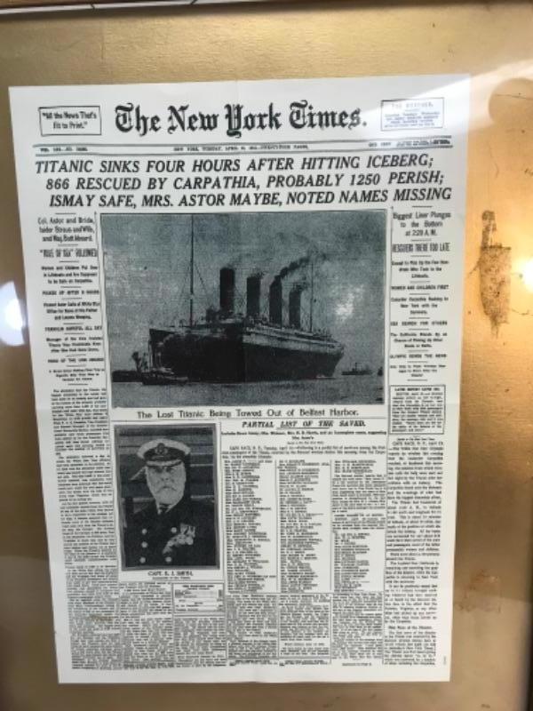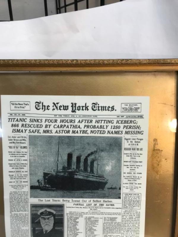 Framed copy of New York Times Newspaper about Titanic Sinking