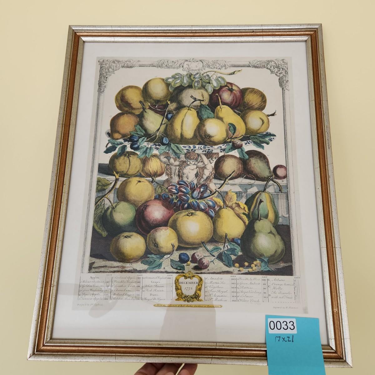 Framed December 1732 Robert Furber Fruit of the Month Print 17X21