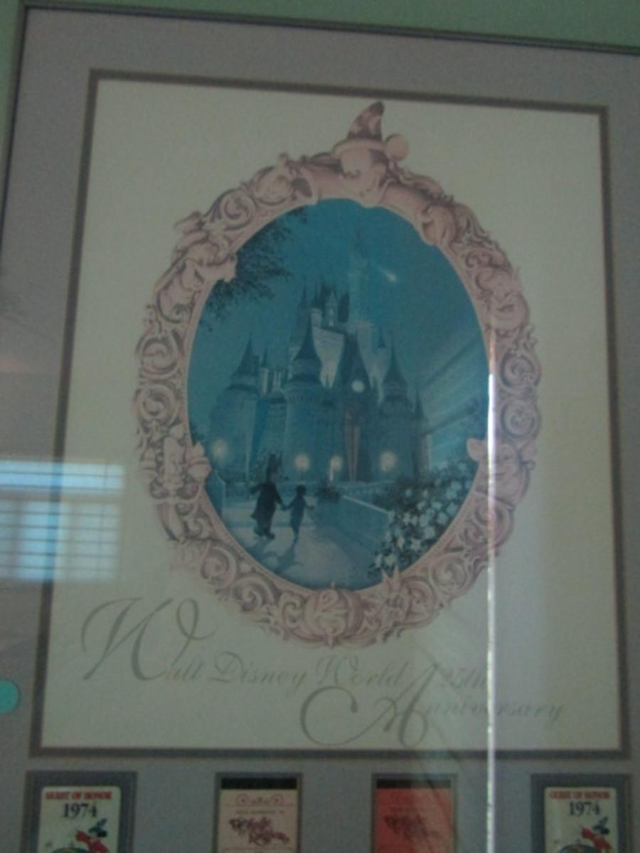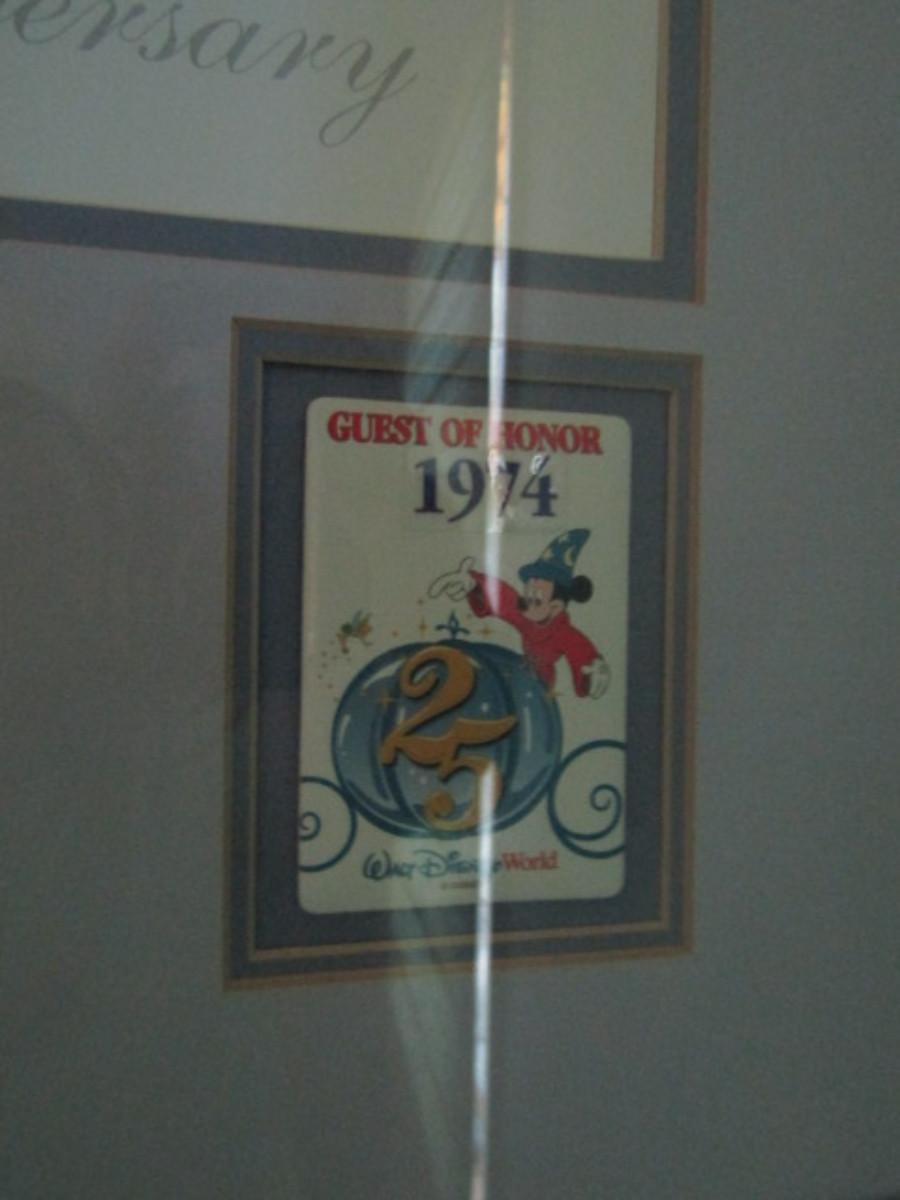 Framed Disney 25th Anniversary Commemorative Art with Guest of Honor Badges- Approx 21' X 28"