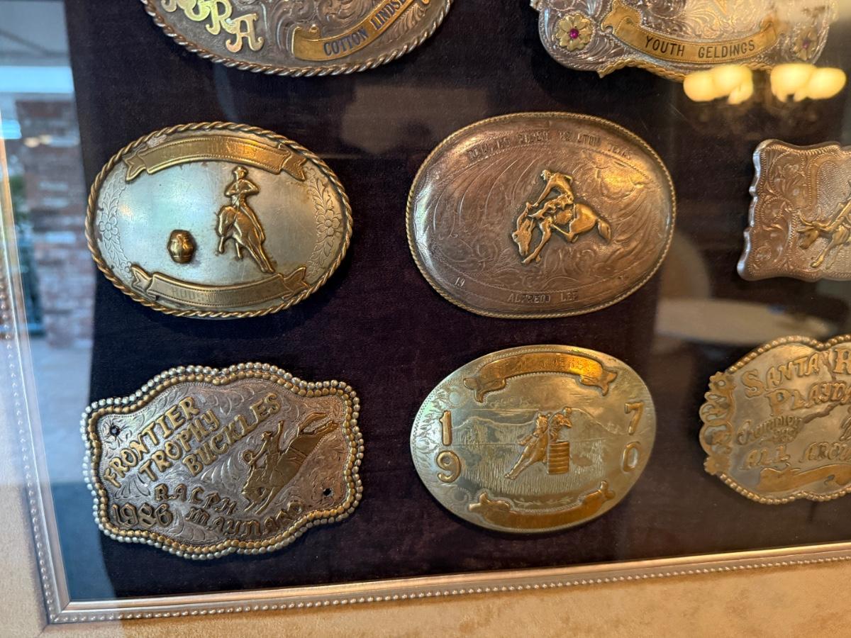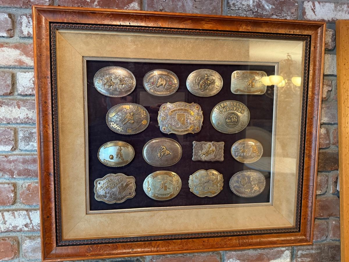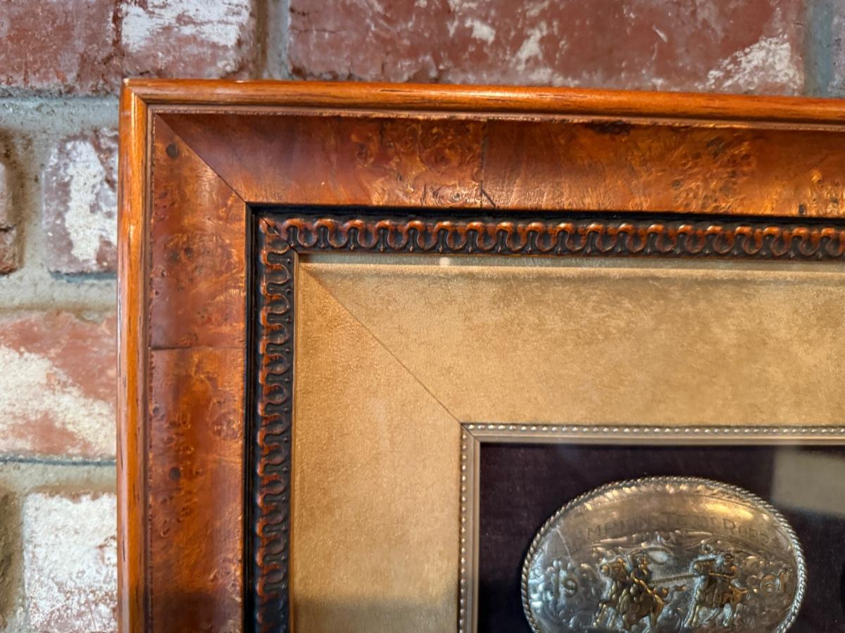 Framed Display of Vintage Western Sterling Silver Belt Buckles