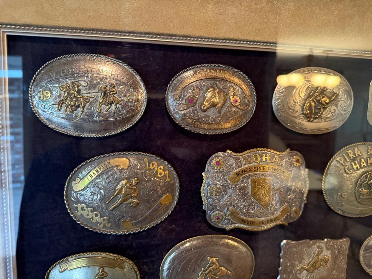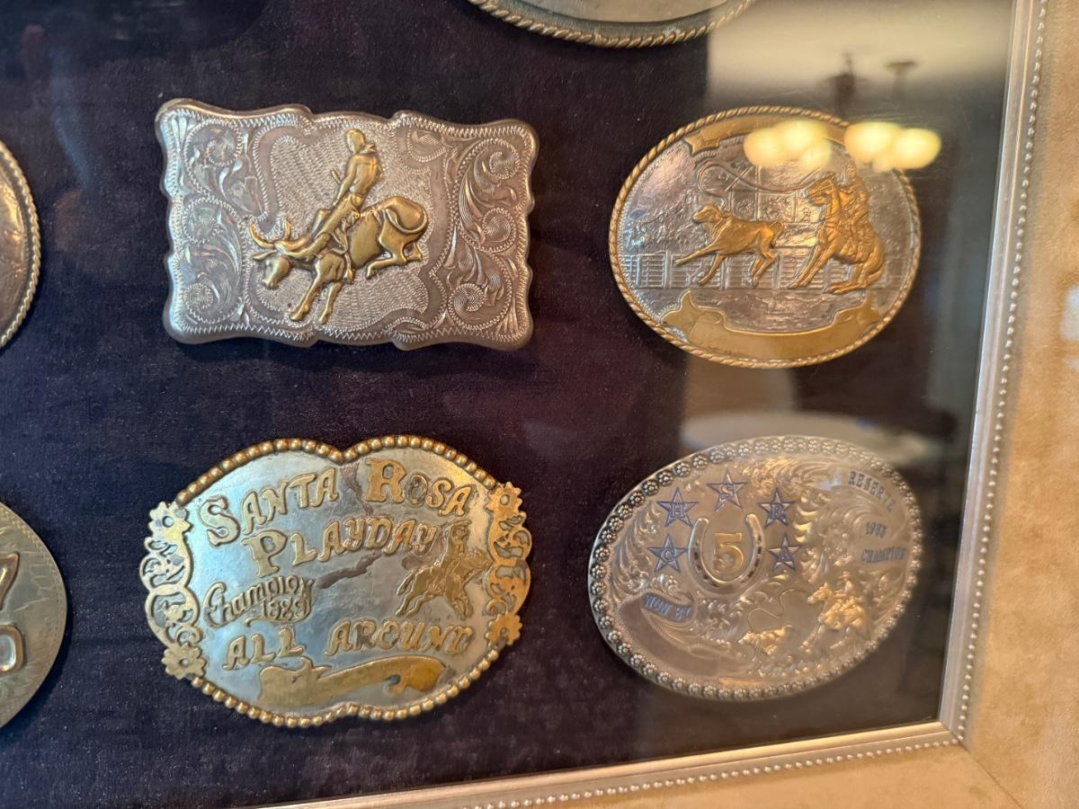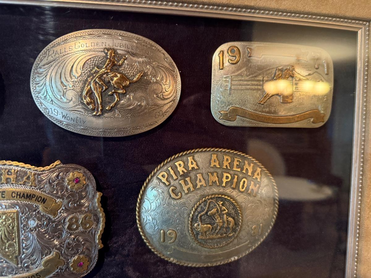 Framed Display of Vintage Western Sterling Silver Belt Buckles