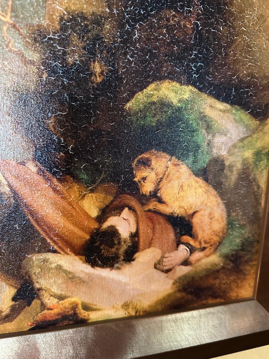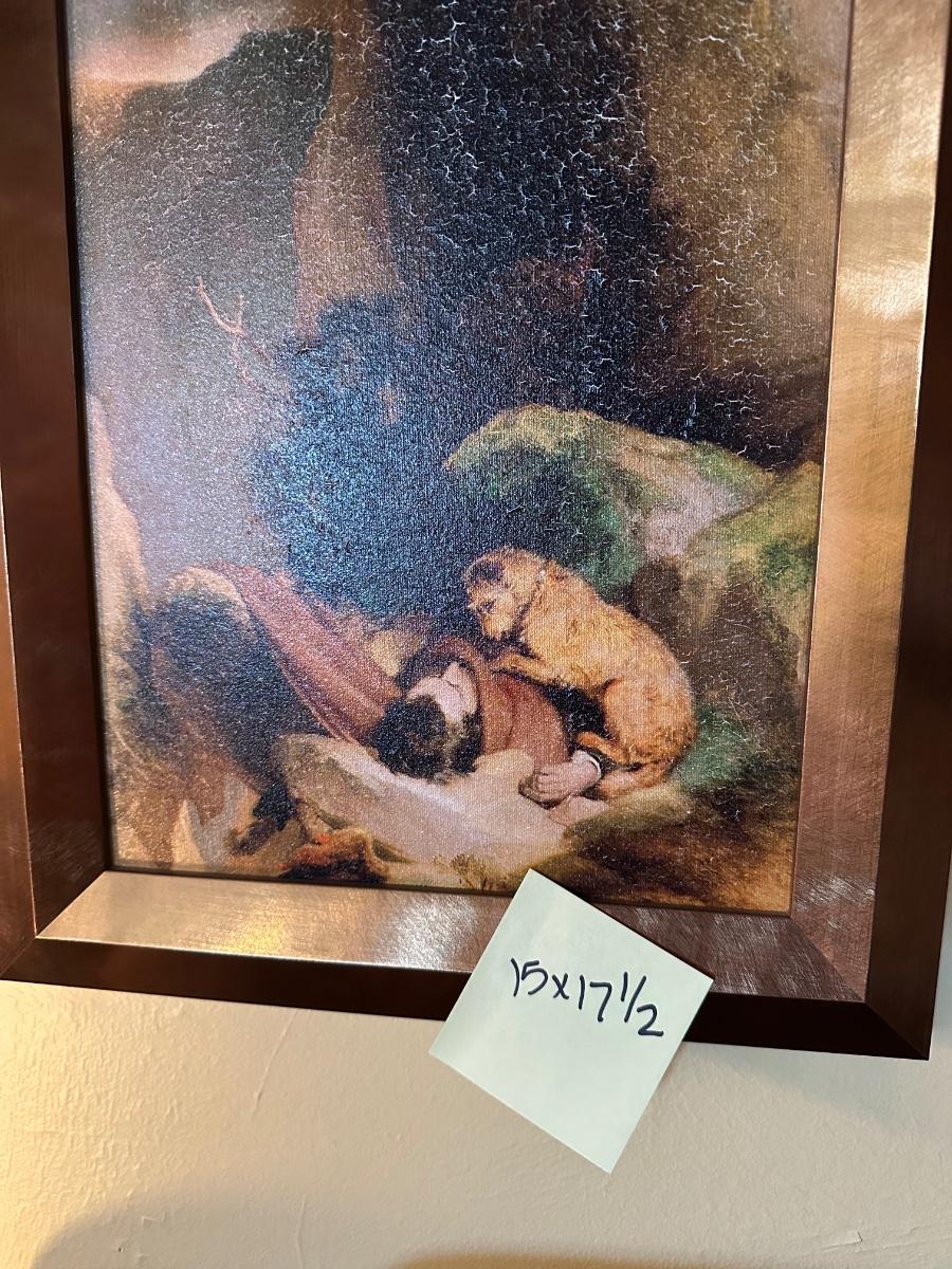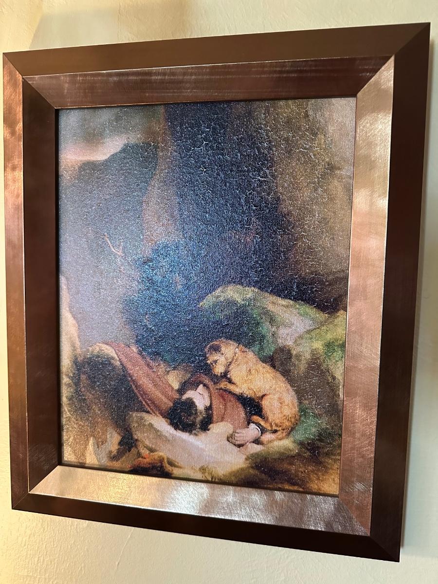 FRAMED DOG ATTACHMENT DEATH OF OWNER ANIMAL ART