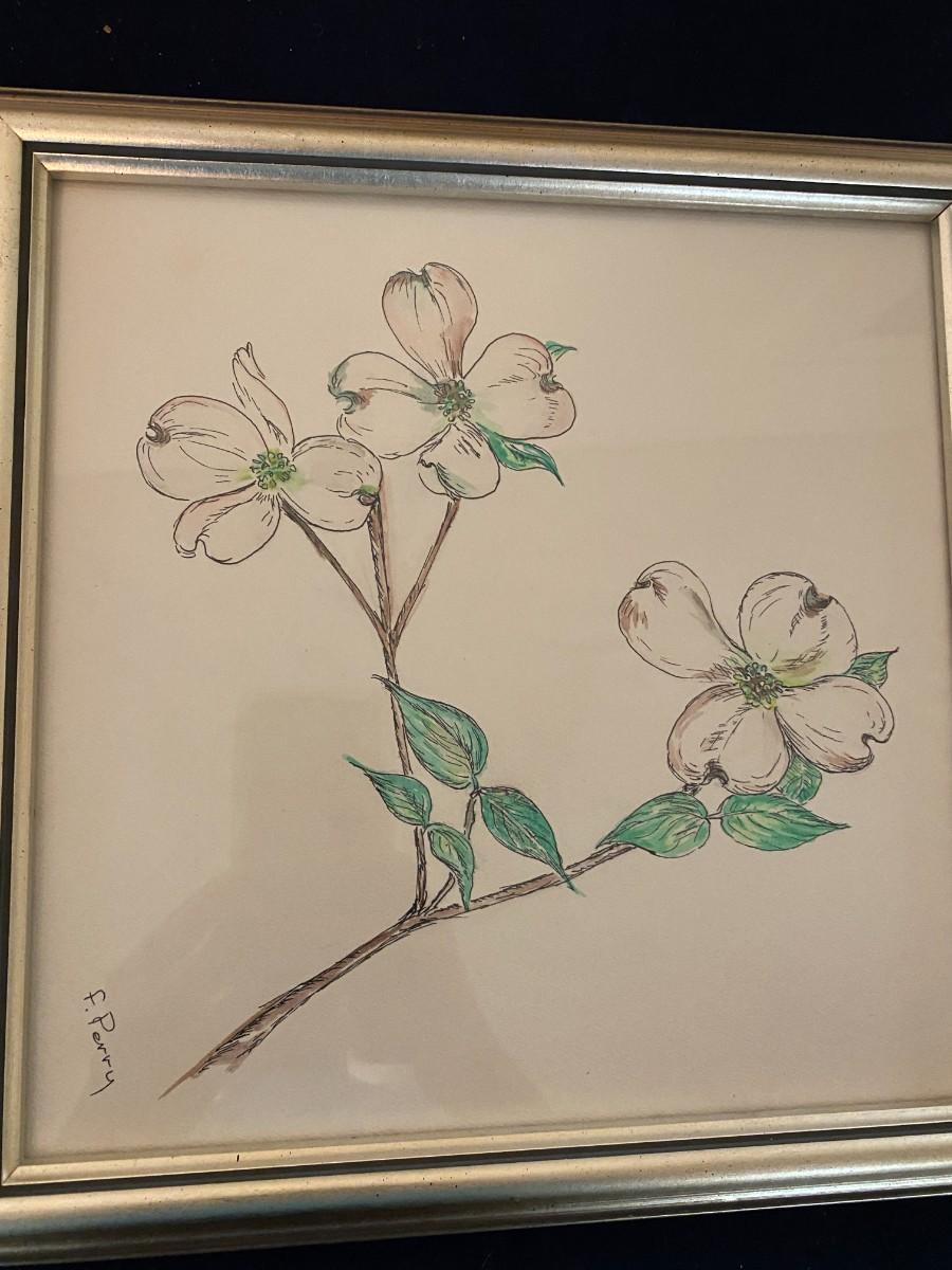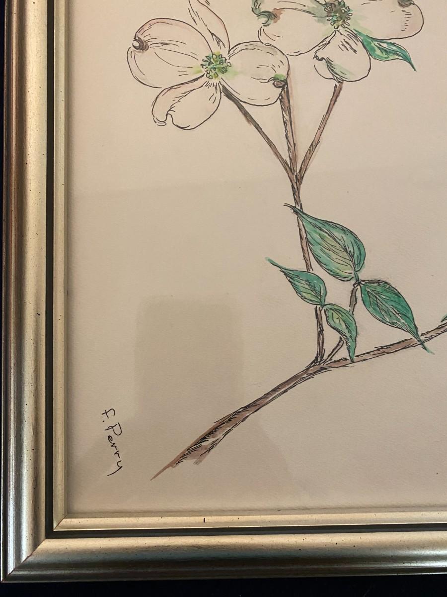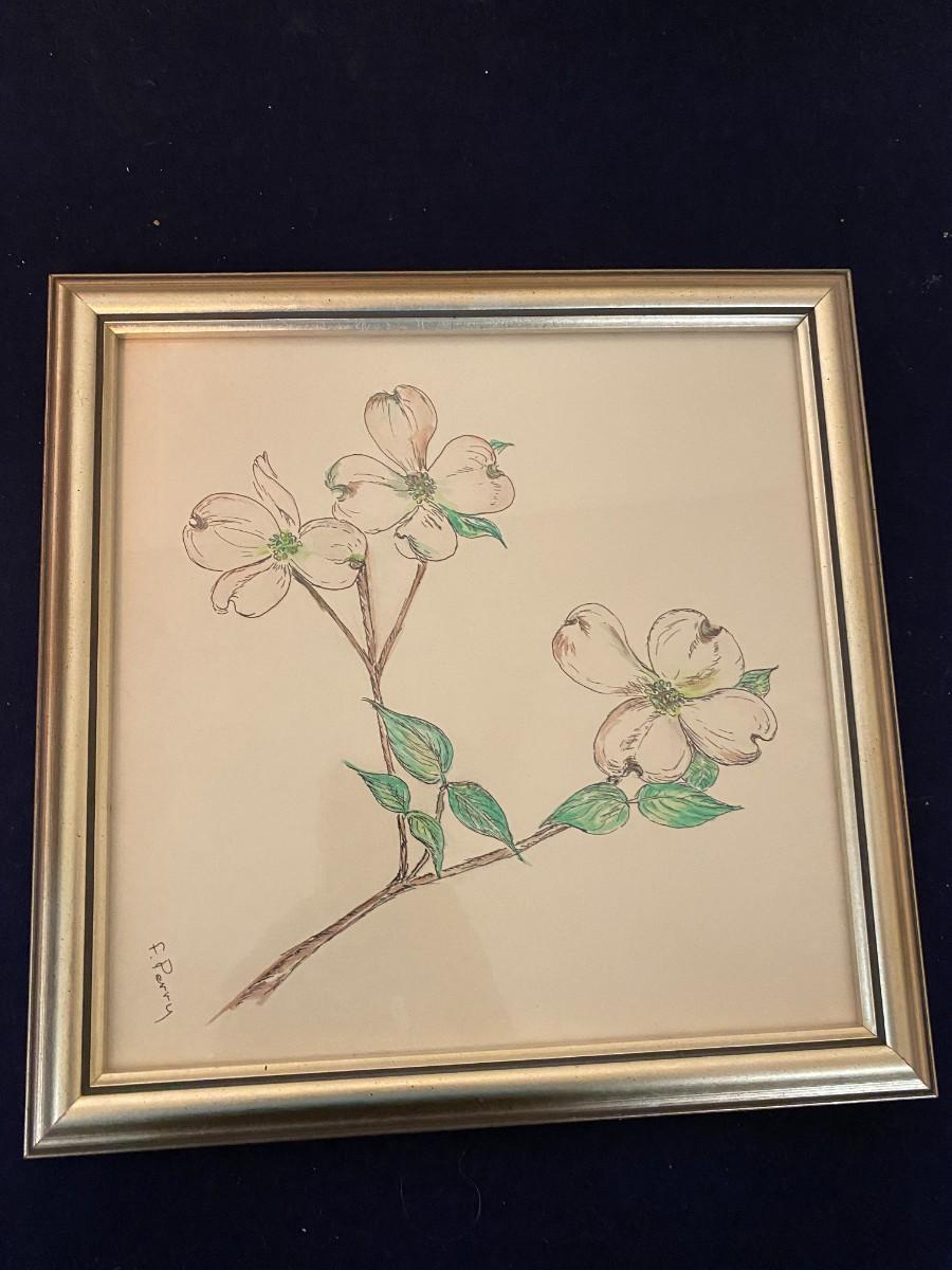 Framed Dogwood Painting Signed F. Perry