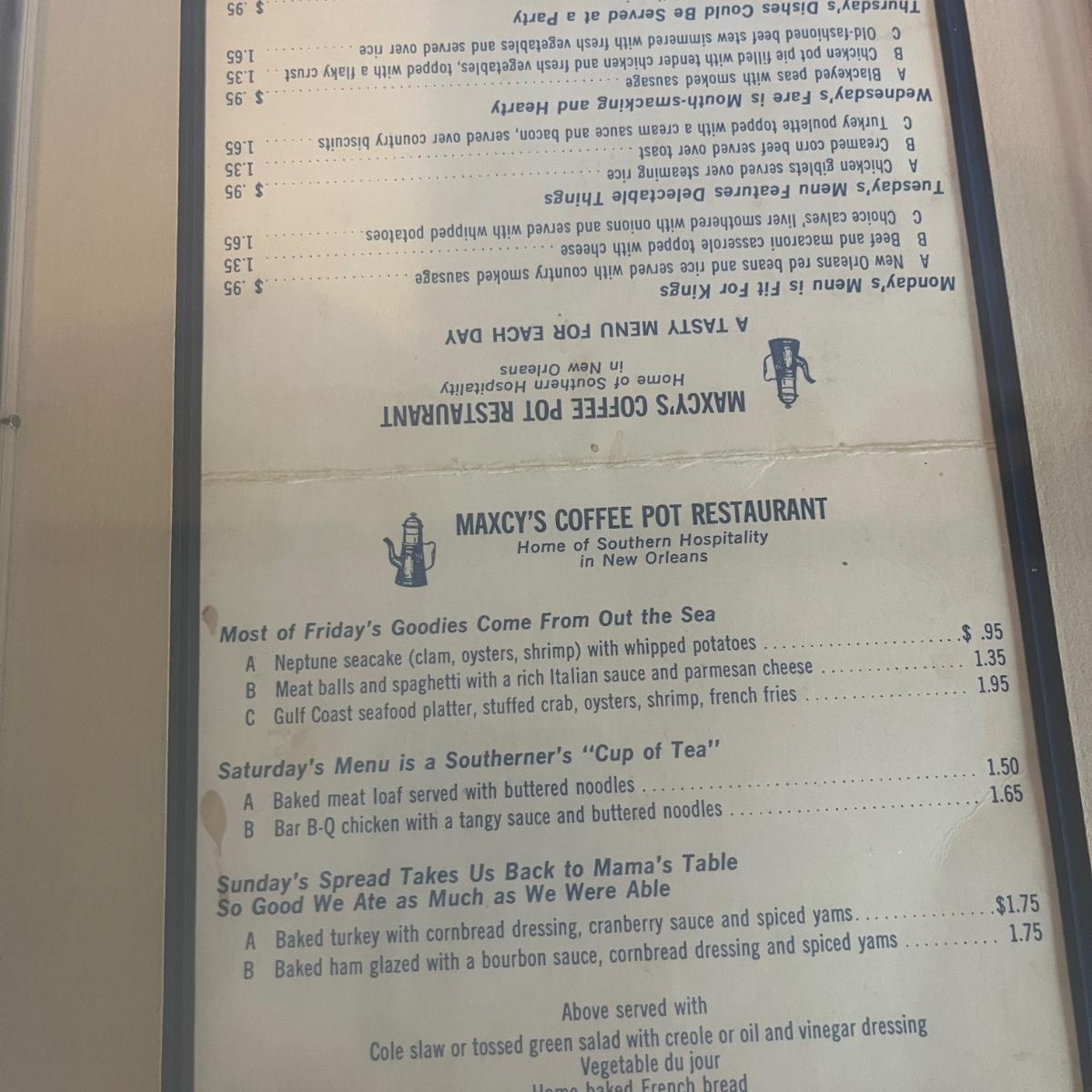Framed Drawing on Back of New Orleans 'Maxcy's Coffee Pot Restaurant' Menu (B2-MG)