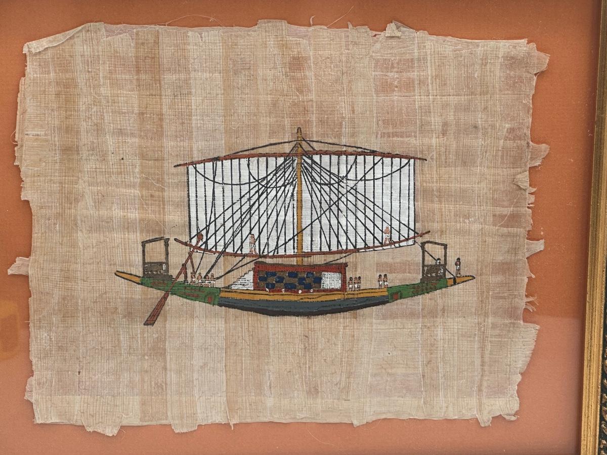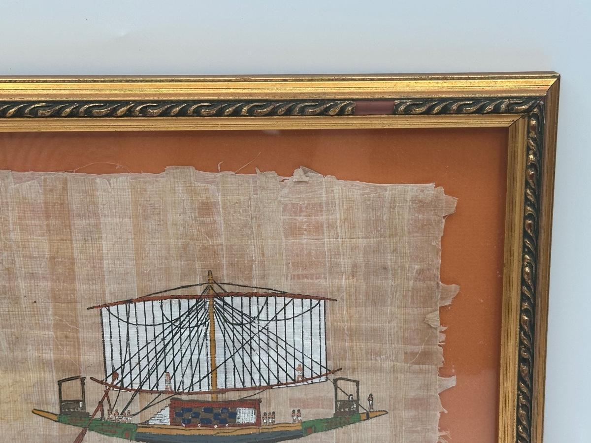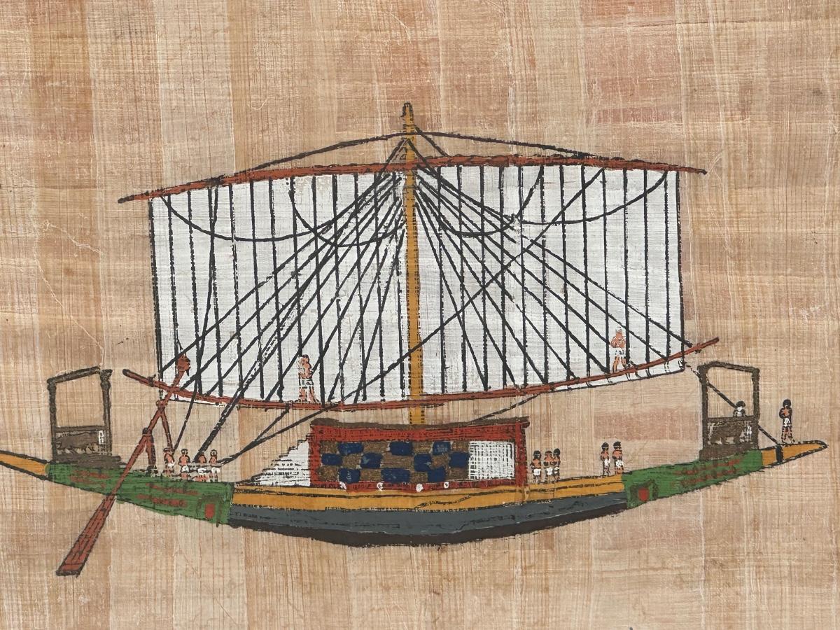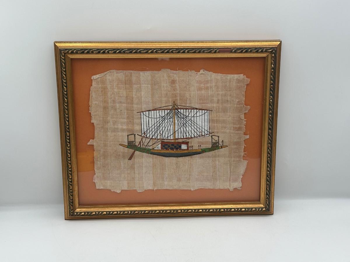 Framed Egyptian Papyrus Artwork – Boat/Ship Scene