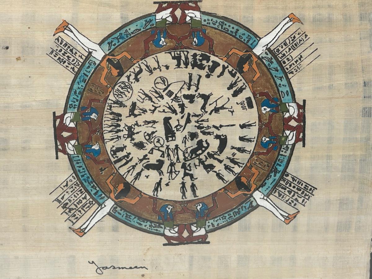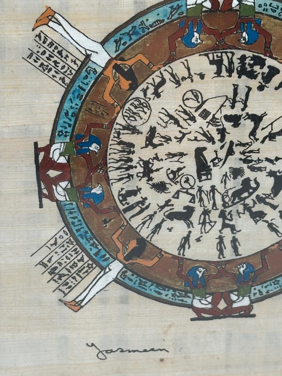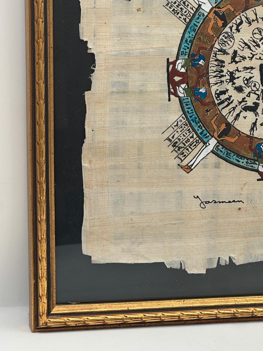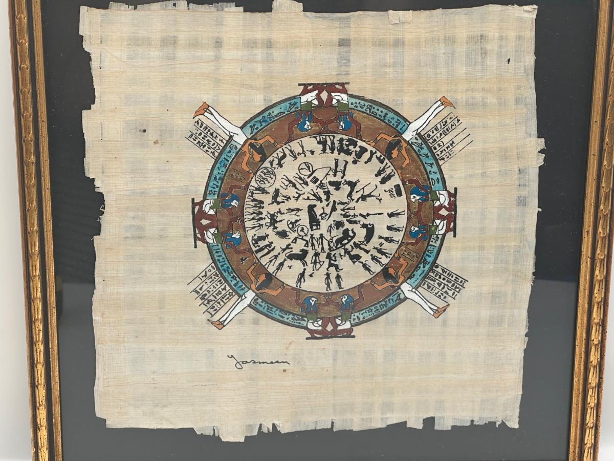 Framed Egyptian Papyrus Artwork – Zodiac / Astronomical Motif, Signed.