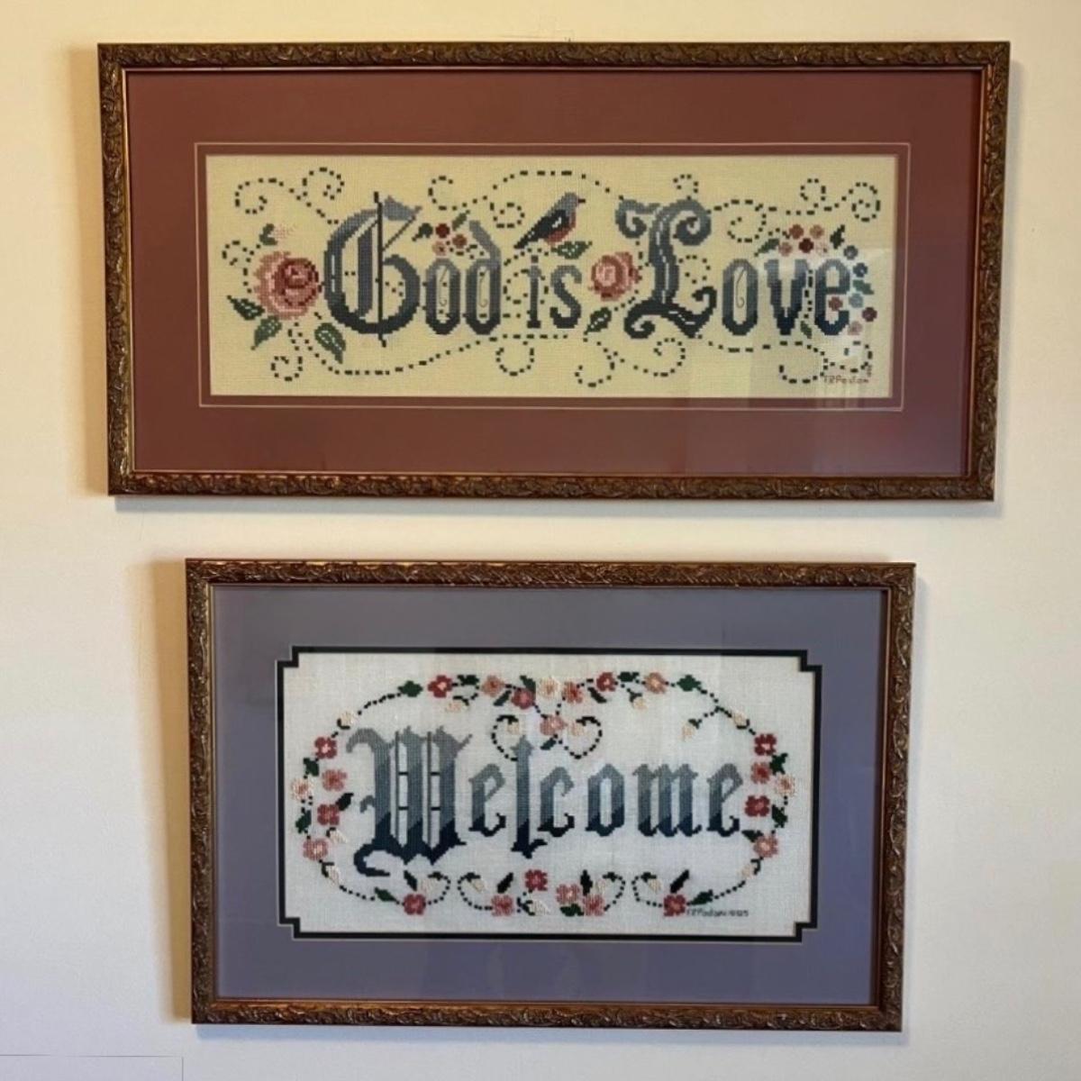 'Welcome' & 'God is Love' Framed Cross Stitch Art (UH-BC)
